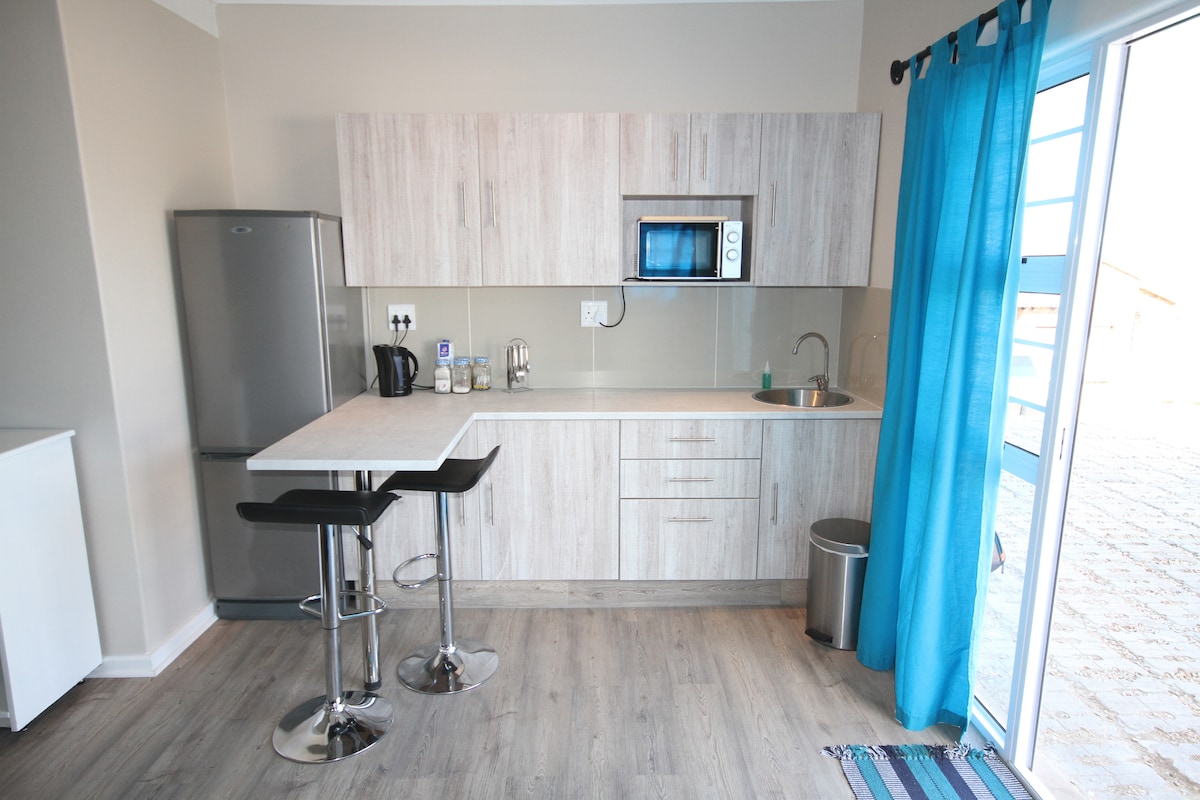 Furnished with all the basic comforts such as bar fridge, microwave, kettle. .please NOTE that the unit has NO STOVE .