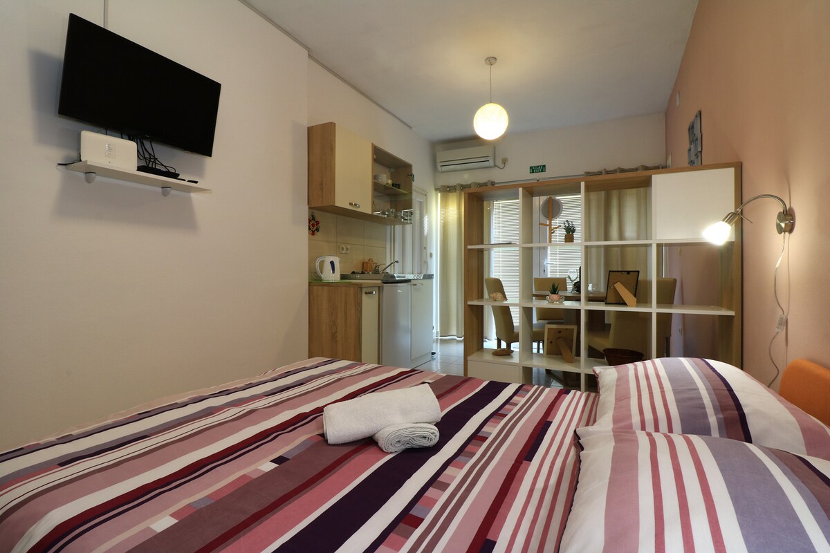 Charming studio for two persons on the ground floor of the object "Antonio", ideal for guests in transit as well as those planning a longer stay at a favorable price. The apartment is located in the center of Jezera, 30 meters from the seaside promenade. The closest beaches are situated 350 m from location . Near the house there are many restaurants and shopping facilities. On the other hand, the position at which it is located room provides the perfect night peace.