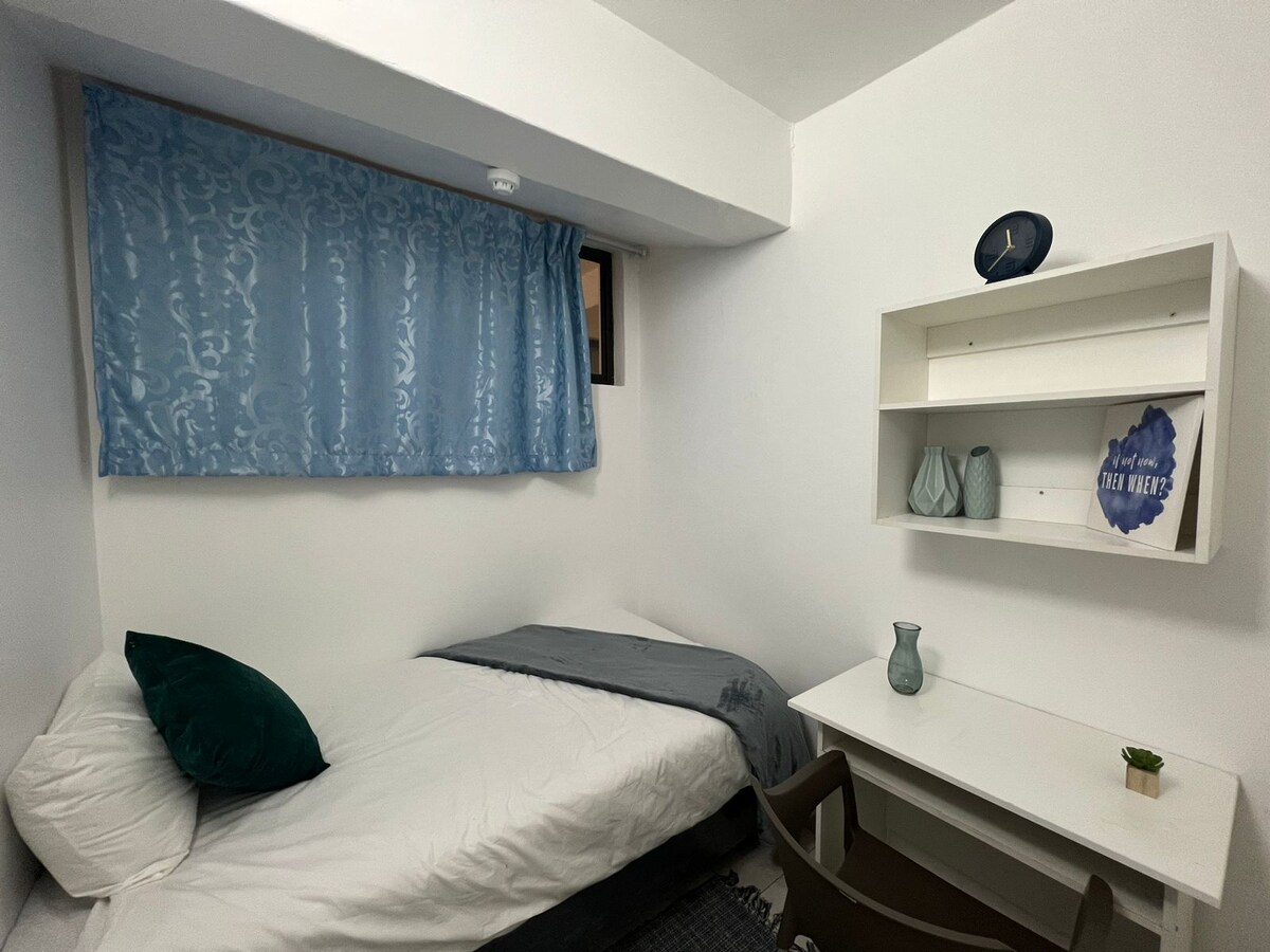 The flat has a fully equipped kitchen as well as a private bathroom ,plus a dedicated study area.