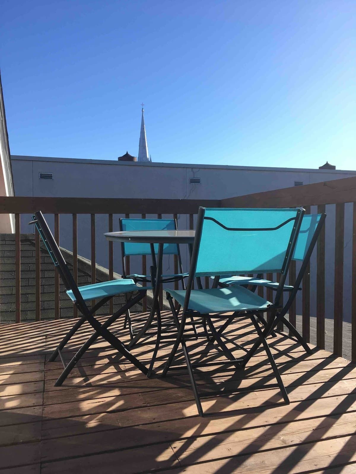 Enjoy a unique stay in this cozy, sunlit apartment featuring a central balcony. Located just steps away from cafés, museum, live music venues, and boutiques.