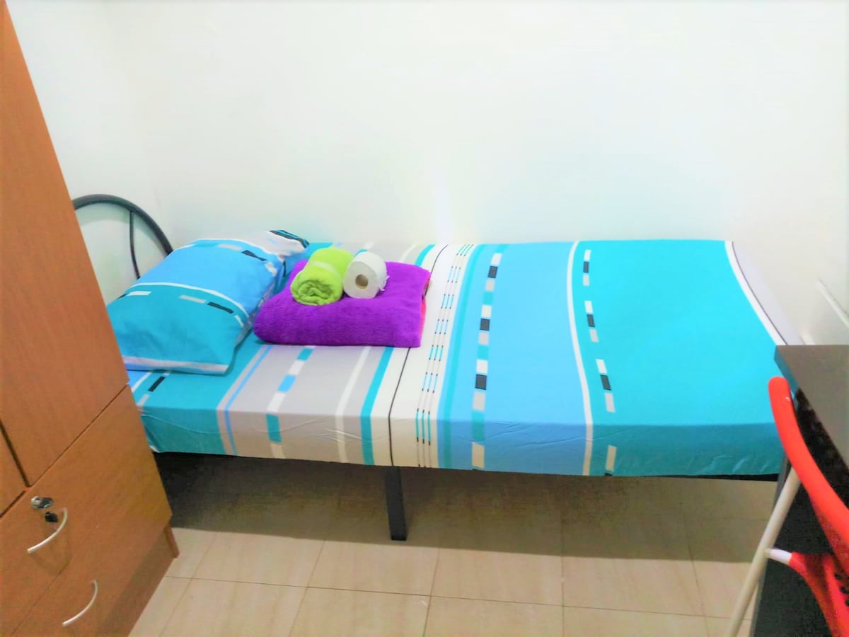 - Airconditioned Single-bed room, wardrobe, desk, chair