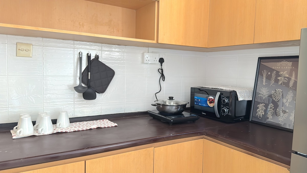 Your apartment spread across 289sq.ft and is fully furnished with air-conditioning systems and includes a functional kitchenette equipped utensils as well as equipment like fridge and microwave for you to cook fresh and delicious meals.