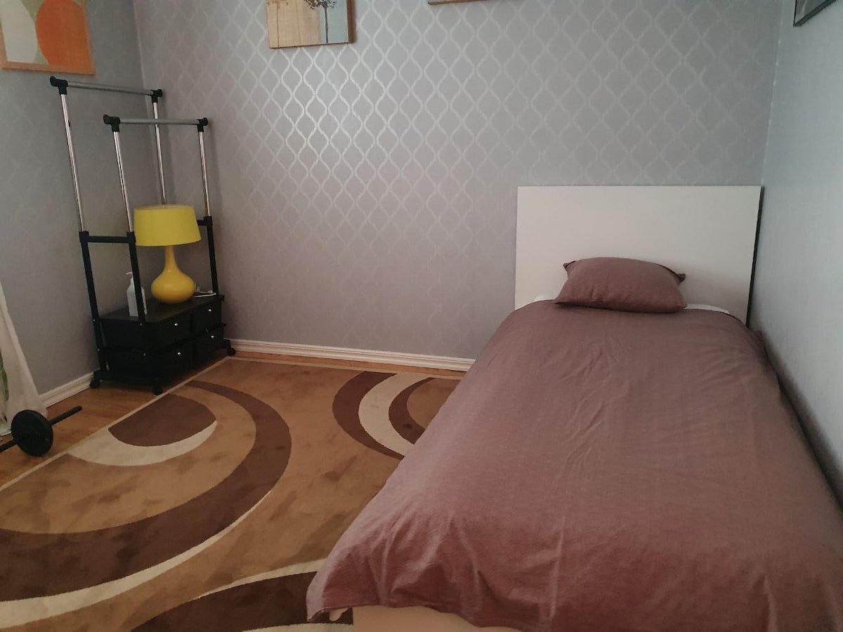 I have an extra room in my apartment that you can still water. You also have access to the kitchen, the bathroom and the living room (feel free to bring your own towel). There is also visiting parking as well. The apartment is close to ICA supermarket and the bus stop. You are not allowed to drink alcohol or smoke in the apartment. They do not walk in the bedroom with shoes. I work Monday to Friday at 3.30 pm after the time I am at home if you arrive earlier unfortunately I am not in home you can wait for me thank you hug 🤩💐🙏Welcome!