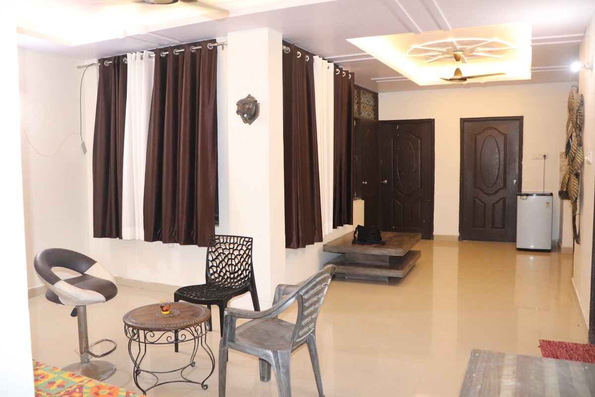 Welcome to The Green Terrace — a stylish 1BR apartment with chic design touches! Enjoy a cozy drawing room with LED TV & high-speed WiFi, a fully equipped kitchen with RO water, and a bright green balcony for your morning coffee. Stay fit with our fitness corner, or unwind on the shared roof terrace with stunning views. Perfect for solo travelers or couples seeking comfort, style, and convenience in one beautiful space. Book now for a refreshing stay!