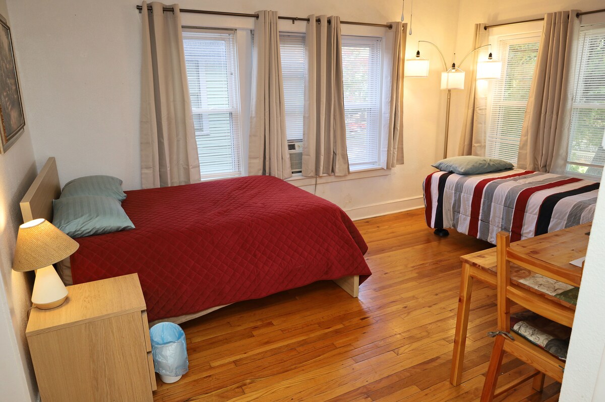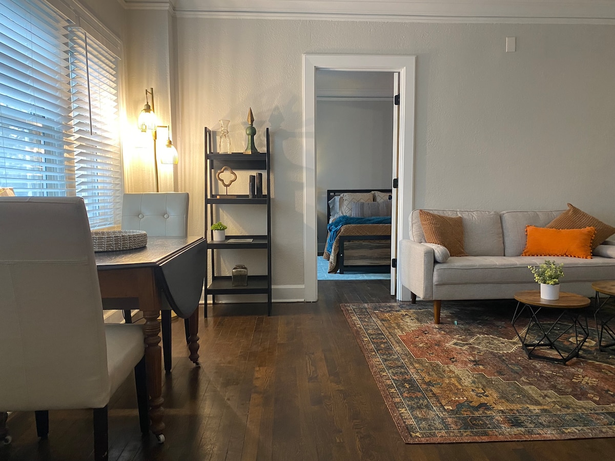 RESTORED 1921 Studio Apartment Building in addition to modern amenities located 1 BLOCK WEST OF MAIN STREET BETWEEN THE COUNTRY CLUB PLAZA AND DOWNTOWN KANSAS CITY. Entire studio apartment provides a pleasant escape in an enchantingly quiet neighborhood in the middle of downtown KC. The apartment is for the budget traveler with no hidden fees. It is about 500 sq.ft. with a full-size kitchen and bathroom. You will enjoy the experience of staying in a landmark historical, residential neighborhood