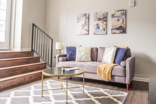 - "I love the location, apartment is nice and clean. Provided everything you could possibly need but the parking situation is unreal in the early morning and 430 to 6pm. Otherwise, this place was super nice and I would stay again." - "Super easy check in/out! Property was easy to access all weekend! Loved the indoor parking spot. Comfortable furniture. Good kitchen supplies to use. Only two things that could use improvement: saw a couple dust bunnies under the bed and sofa and the property could use a better shower head."
