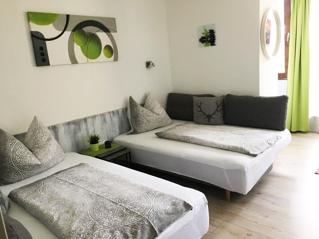 Apartment Julia is a 38 m2 1 bedroom apartment with extra bathroom, elevator in the building. It is equipped with a box spring bed, a sofa bed for 1 adult or child (possibly two children under 10). The kitchen incl. seating is equipped,bathroom with a shower and toilet. TV in front of the bed, WiFi. Balcony incl. seating set. 700 m from the center of Kaprun, about 1.5 km to the ski lift. Bus stop at your doorstep. Gastronomy as well as supermarket in the immediate vicinity. Pizzeria in the house.