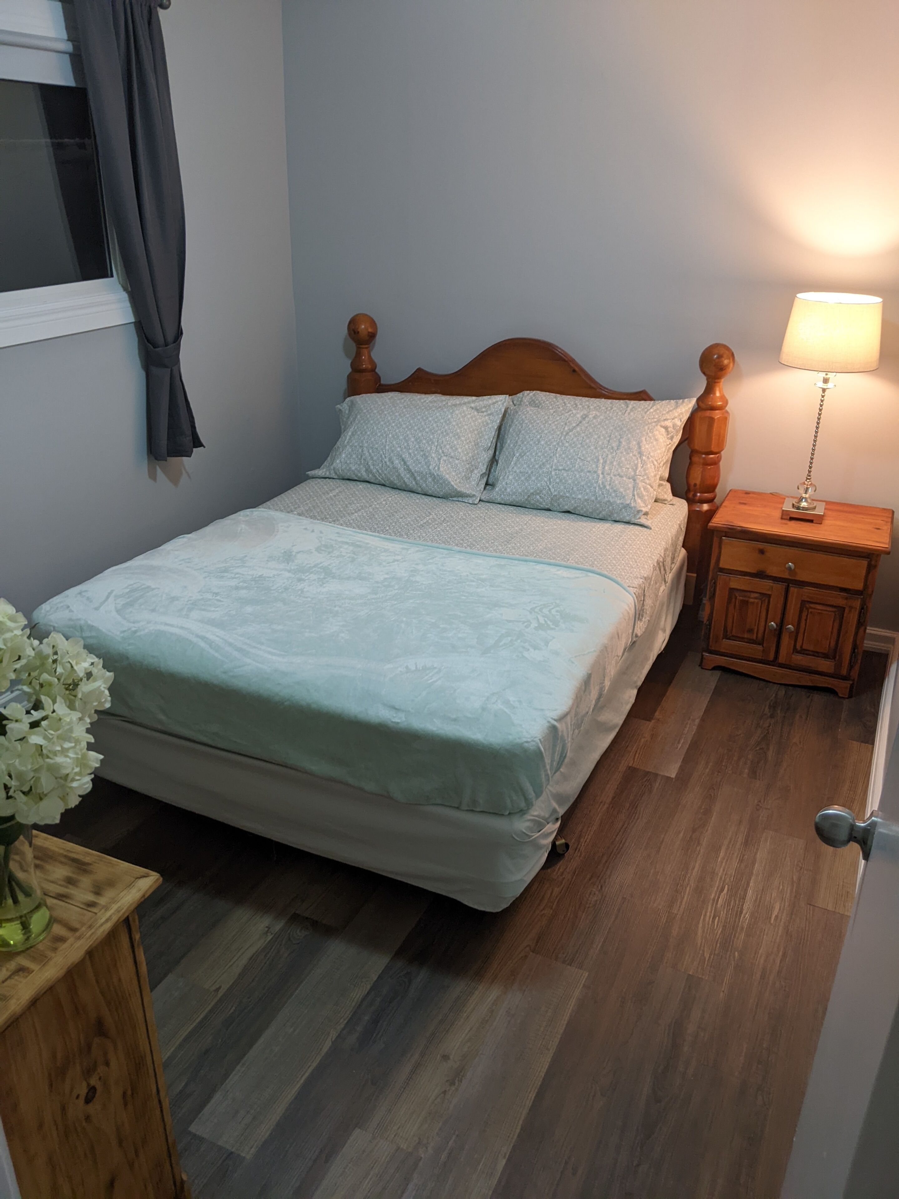 The main bedroom holds a queen-sized bed with a dresser to make you feel more at home. The second bedroom holds a double-sized bed with a closet where you’ll also find additional pillows. Each room comes equipped with a portable heater as well as motion sensor night lights to ensure a safe and comfortable stay.