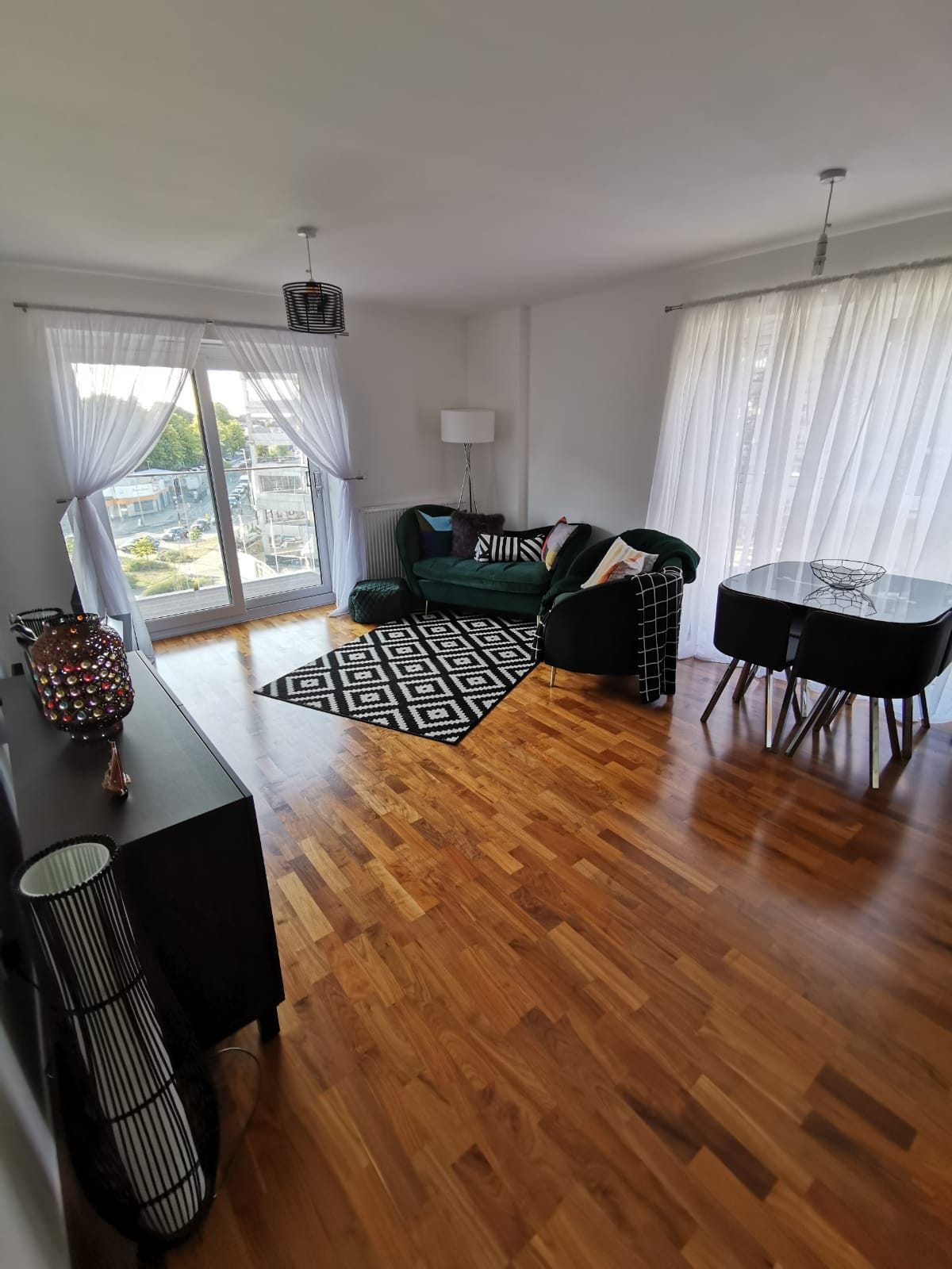 The flat is modern, tastefully decorated and elegantly furnished, in an open plan living space.