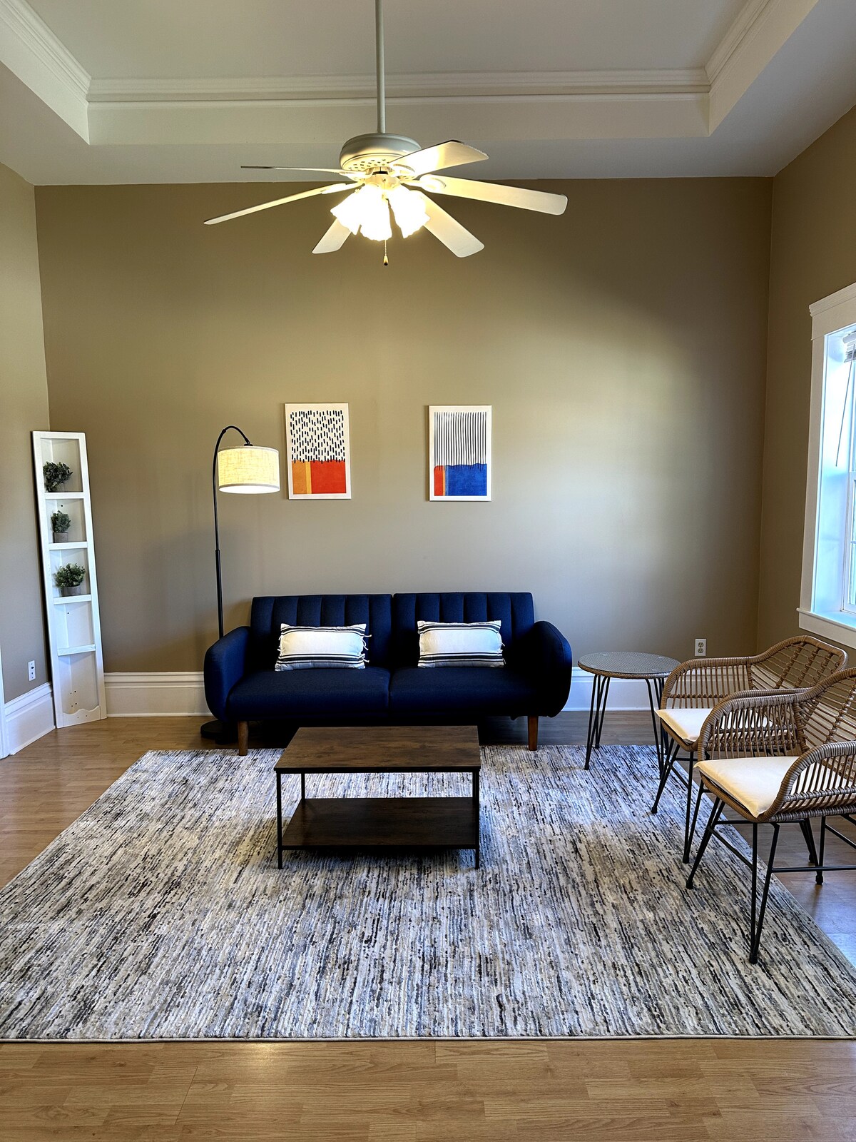 This apartment is HUGE! Three queen beds and Big Joe bean bag, will sleep up to 7 people comfortably! Thoughtfully furnished and beautifully decorated, this apartment is perfect for a weekend getaway or a long term guest. This historic home is conveniently located in the downtown historic district of Hopkinsville.