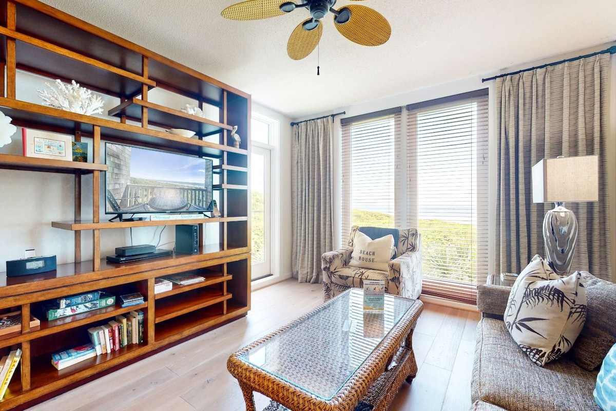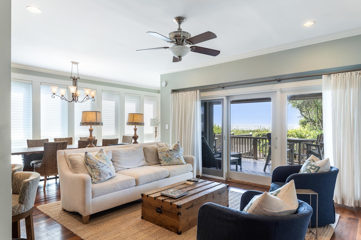 4303 Windswept Villas is a 1 bedroom, 1 bathroom first floor oceanfront villa in East Beach Village, only steps to the miles of pristine beaches of Kiawah Island. This elegant first-floor Windswept villa features ocean views from the living room - soak up some sun on the deck, dine al fresco on the covered porch, or just curl up on the couch for a cozy nap.