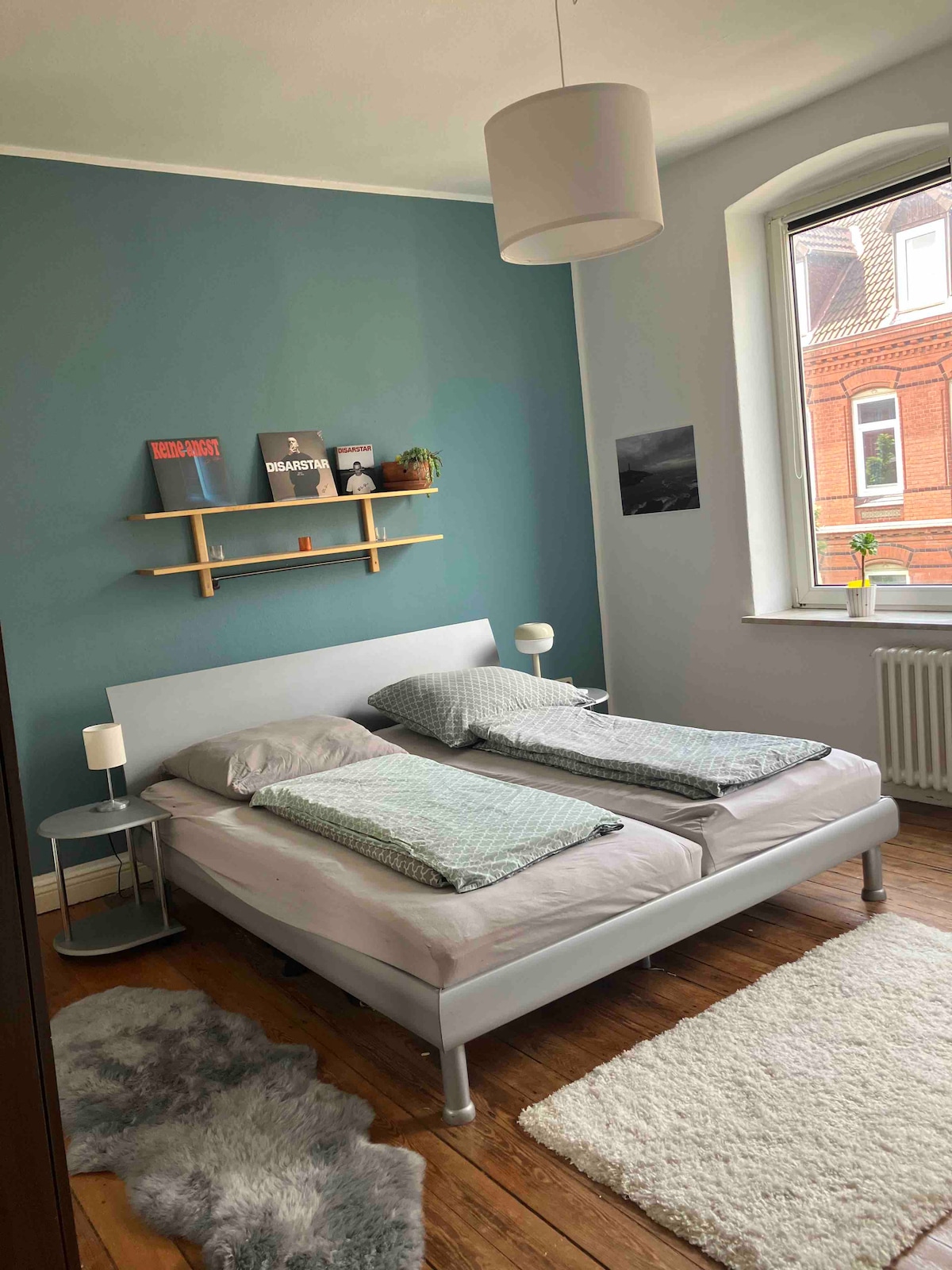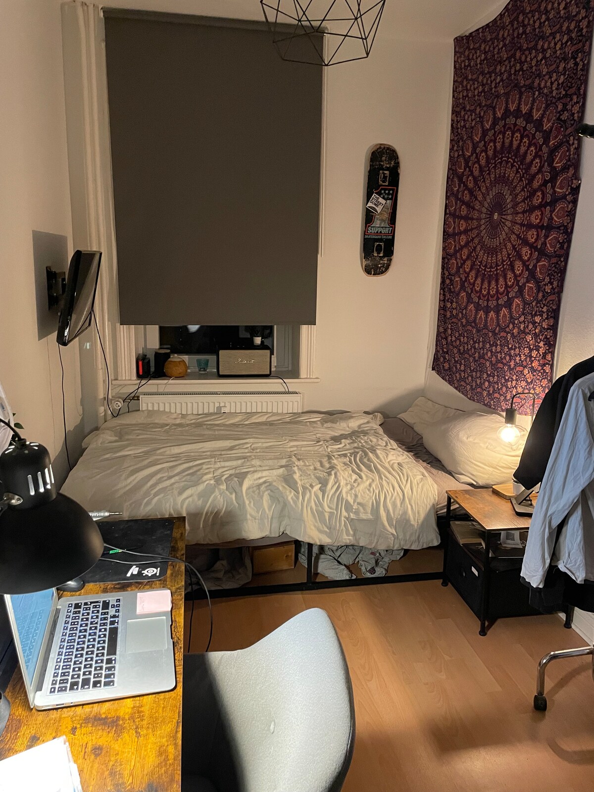 The room is located in a 3-room apartment on the ground floor. Within a few minutes' walk you will find many bars, clubs, supermarkets, parks and sports facilities. There is still a very nice physics student in the apartment, who is usually there and a carpenter's apprentice who works during the week from 6:30 am- 4:00 pm. So you have to share the bathroom and kitchen with the other two. So if you are looking for a simple but nice room for little money, this is the place to be.