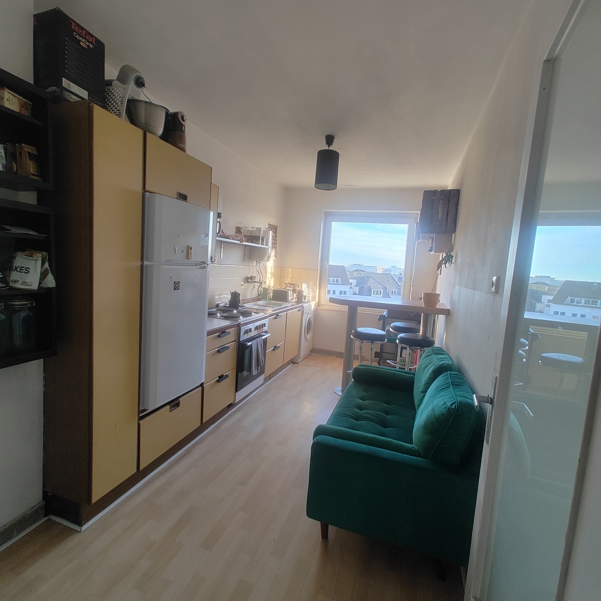 Old building apartment on the Kieler Ostufer. The apartment has a total of 75 square meters, 1 large bedroom, a large living room with dining table and a large sofa and a small room with a 1.40 m sofa bed as well as a kitchen with dishwasher and washing machine and a balcony. The bathroom has a shower. Numerous shopping opportunities are within walking distance, the nearest bus stop is only a 3-minute walk away, and you can walk 15 minutes to the train station in 15 minutes.