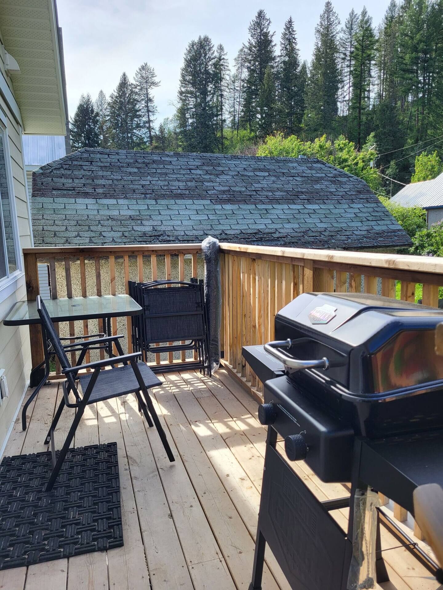 The apartment is a tastefully decorated newly converted medical clinic in downtown kimberley with a view of the ski hill from all the front windows.It boasts the largest patio in kimberley and also has private parking with 2 parking spaces. Despite it being on the second floor the entrance is level with the parking lot at the back with only one step.The foyer is large and has room for skis or golf clubs and any gear. 3 equally sized bedrooms with queen sized beds a closet in each room. Each bed has high end linens, extra pillows and blankets.. 2 full bathrooms. Bathroom #1 has a very large tub ventless washer/dryer and a view of the ski hill. Bathroom #2 has a rain shower. Open concept kitchen dinning and living room with an amazing view. Kitchen has a Kureig, french press, pots pans, sub zero fridge freezer, induction stove/ oven, dishwasher, dinner setting for 8, salt and pepper. The 1,200 square foot patio seats 10 comfortably at the table many lounge chairs and a fire table. Everything is new in this perfectly located apartment.