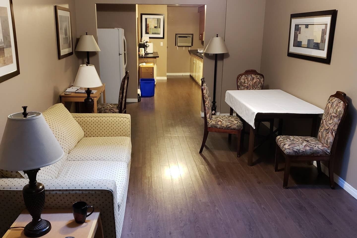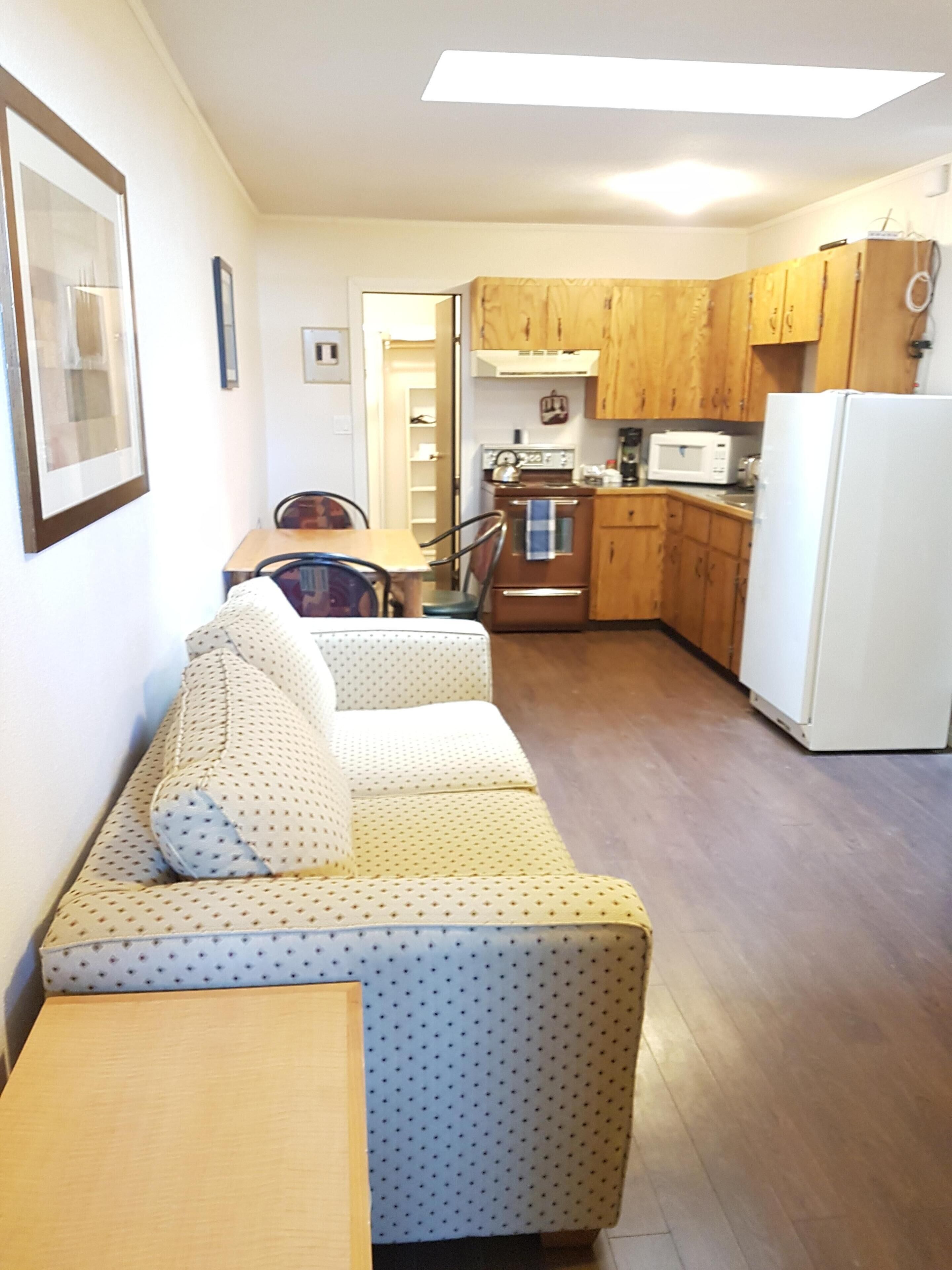 Welcome to The Burrow, our charming one-bedroom studio located just a 5-minute drive from Kimberley's vibrant downtown. Nestled in a peaceful neighborhood, this cozy retreat offers a private entrance leading into a spacious mudroom, complete with a roomy closet and a small dining table. Beyond the mudroom, you'll find a bright and airy space that includes a comfortable bed, a cozy seating area, TV with Netflix, and a basic kitchenette.