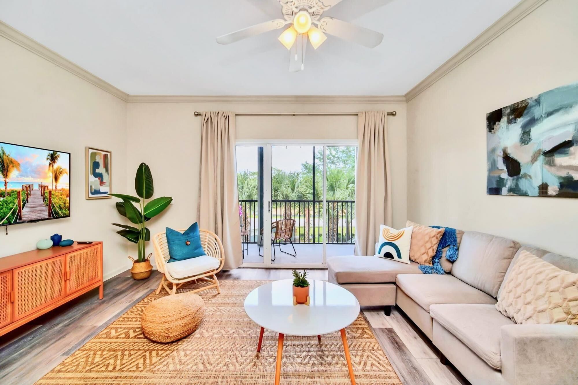 FREE PARKING! Discover this designer studio just 7 minutes from Disney Parks and major highways. Perfect for short or long stays, it blends hotel-like comfort with home conveniences. Features: Sleep Comfortably: King bed and sofa bed.