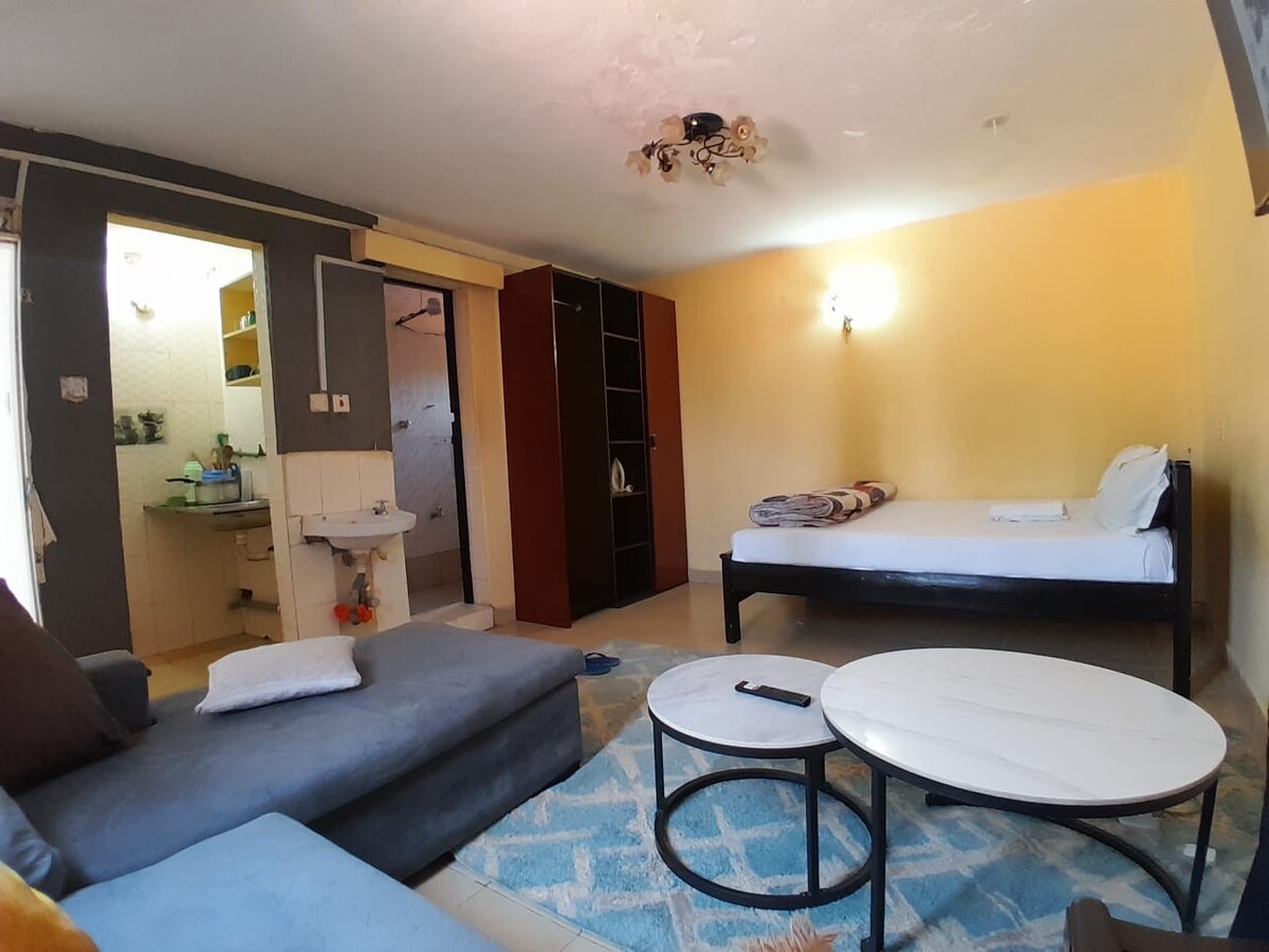 This apartment has a spacious living area, equipped kitchen, bathroom, toilet and a serene bedroom for the perfect night sleep. Located about 2 kilometers from the city center and 3.5 kilometers from the Kisumu International Airport, you'll be steps away from top restaurants, shopping malls, vibrant nightlife and popular attractions. It's located near a police station for safety and security. Ideal for solo visitors or couples – come experience the perfect blend of convenience and relaxation!