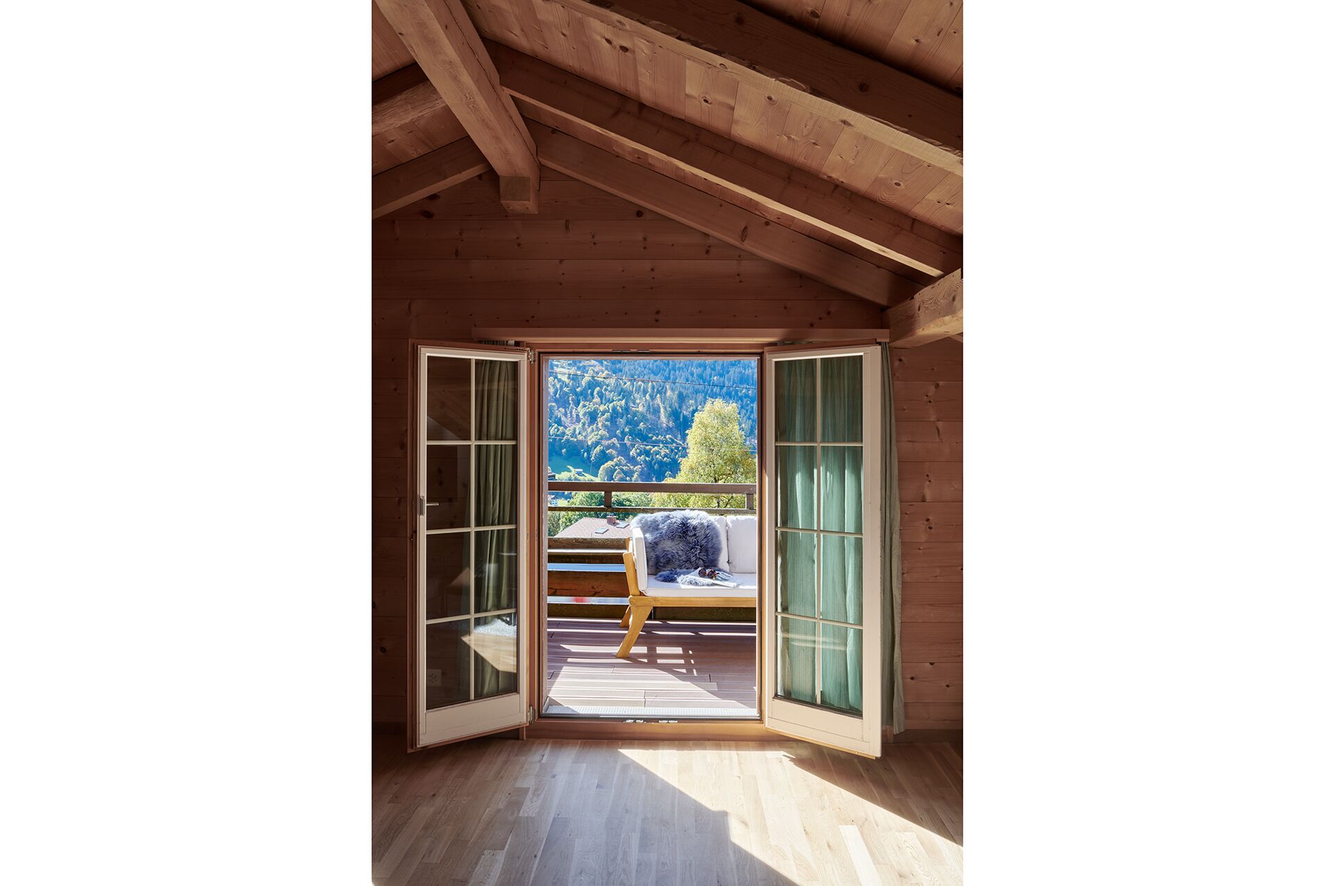 The Gotschna studio is located on the second floor of the Casa Clara. It boasts incredible mountain and valley views from its very own private balcony.