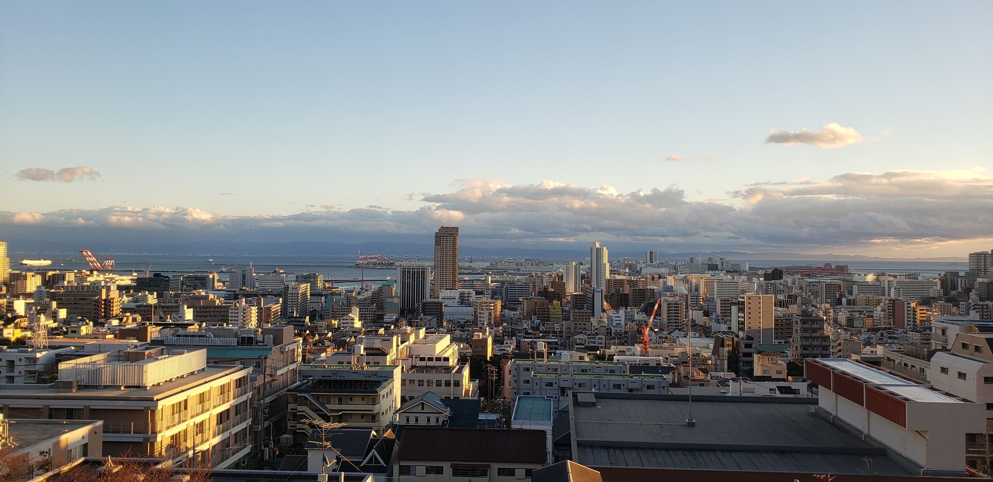 - "Great view of the Kobe skyline and waterfront, from a spacious, two-bedroom apartment up on the hill overlooking the city. Close to the train station, and right along a bus route into the city."