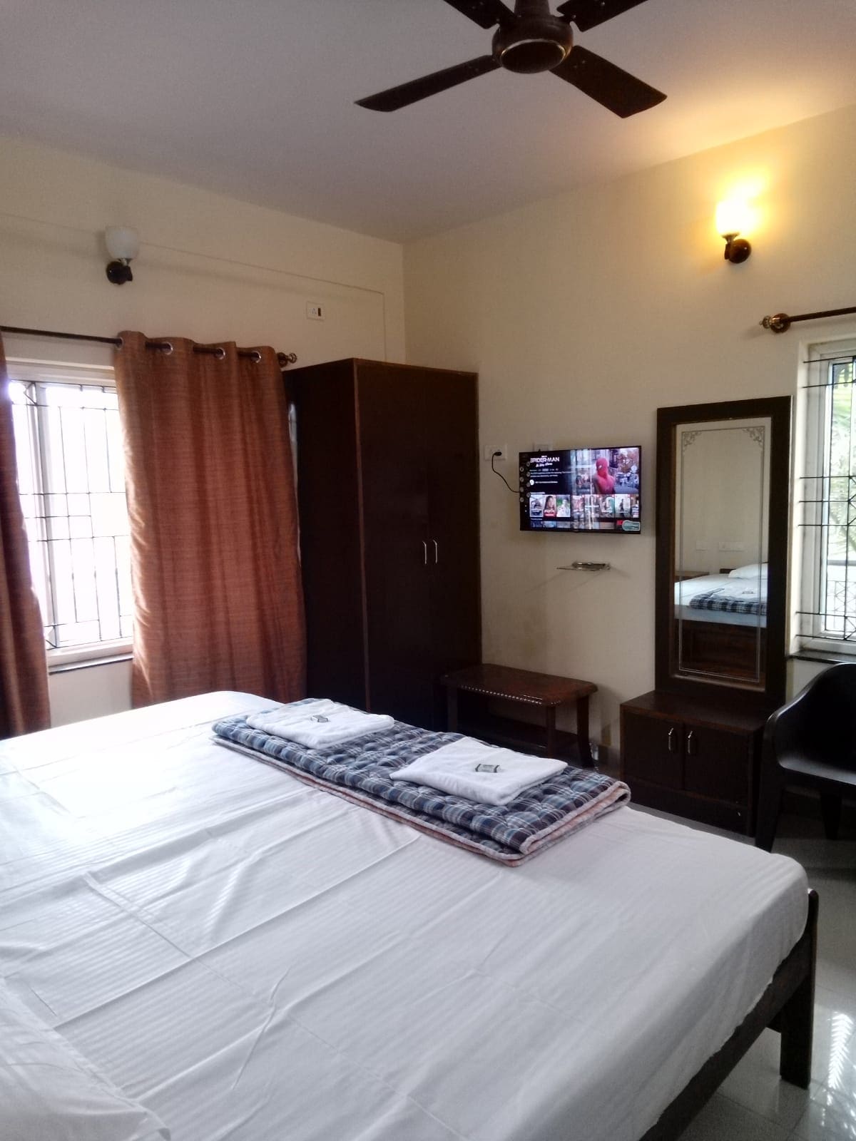 Rooms:Each room features a private bathroom with a bath and shower, ensuring a relaxing stay. Extra bed can be provided in each room. Room is near to all the tourist places in madikeri and also veg and non-veg restaurants are near to the room.