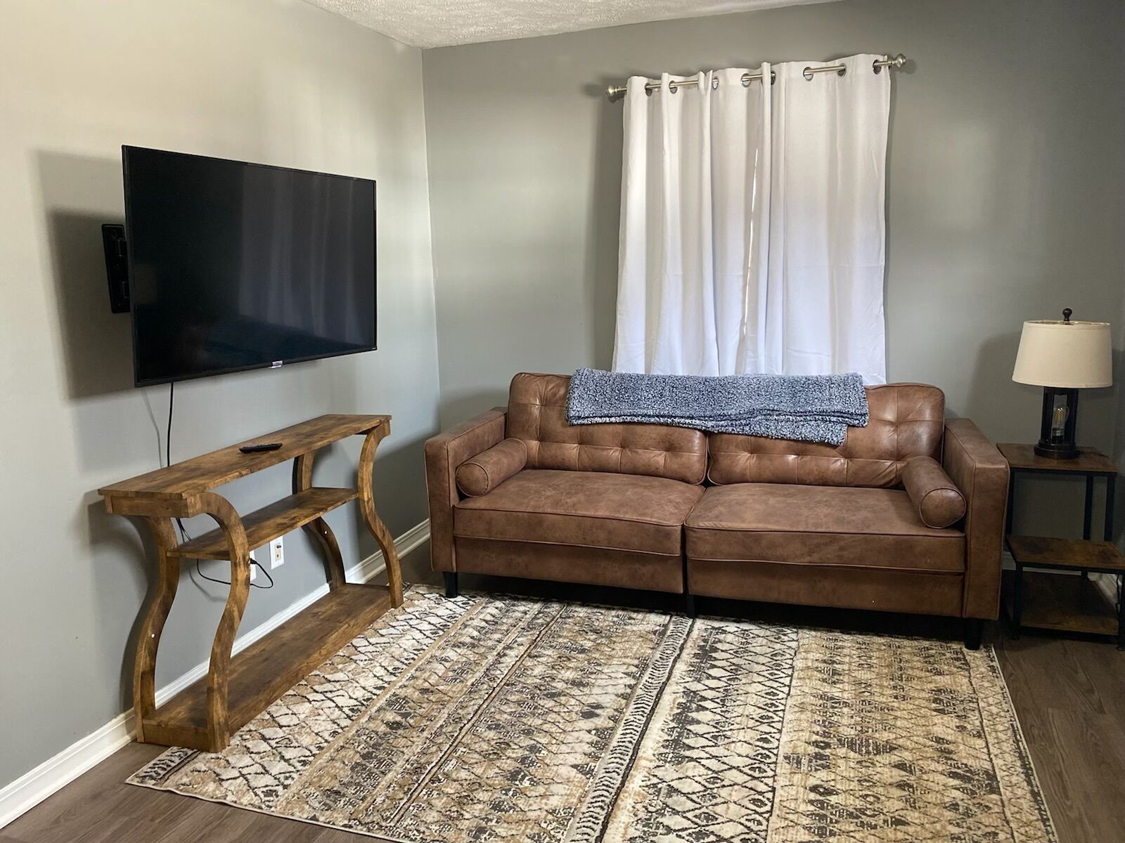 Our two bedroom duplex is a modern, cute, and quaint place that offers two large bedrooms with King-Sized beds and Roku TV's. The kitchen is small but versatile with everything you need to make your homemade meals. There is a full size washer and dryer in the utility room, Large bathroom with plenty of space, dining room table can sit 2-4 people with an added bench, the living room has a 50" flat screen Roku TV that has content for everyone, along with a comfy leather sofa. **Please note this duplex has one exterior door only**