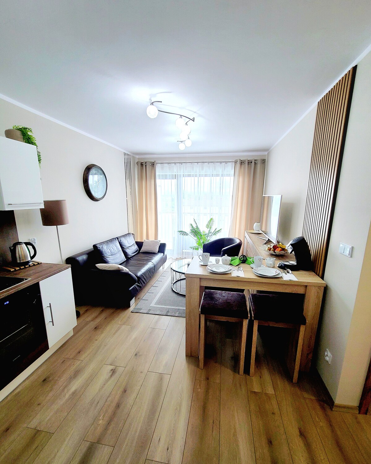 - "Nice and modern accommodation with full equipment in the kitchen and bathroom. Many shelves and wardrobe in the flat . Very good and beautiful localization close to Parsęta river . "