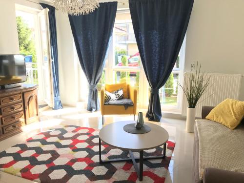 Just 1.1 miles from West Beach and 1.1 miles from Grzybowo Beach, Apartament Turkus z ogrodem features accommodations in Kołobrzeg with barbecue facilities. Both free Wifi and parking on-site are available at the apartment free of charge. Kolobrzeg Central Beach is 1.6 miles from the apartment and Kołobrzeg Railway Station is 1.3 miles away. Providing a terrace and garden views, the apartment includes 1 bedroom, a living room, flat-screen TV, an equipped kitchen, and 1 bathroom with a shower. Towels and bed linen are provided in the apartment. The property has an outdoor dining area. A children's playground is also available at Apartament Turkus z ogrodem, while guests can also relax in the garden. Kolberg Pier is 1.5 miles from the accommodation, while Kołobrzeg Lighthouse is 1.6 miles away. Solidarity Szczecin-Goleniów Airport is 65 miles from the property.