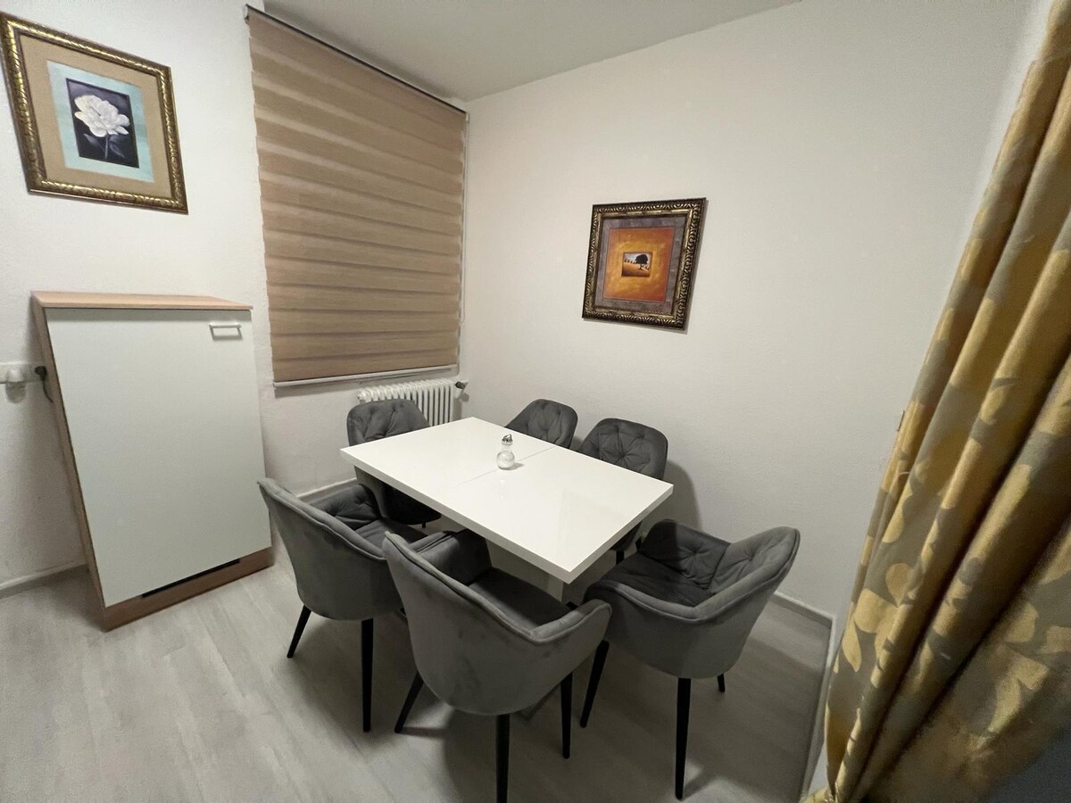The apartment is located in the heart of Krefeld. There are many restaurants and shopping within walking distance. The 90m ² apartment has two bedrooms, a living room, a dining area, a kitchenette, a bathroom with shower and large bath, a guest toilet, a nice balcony with seating anyway.