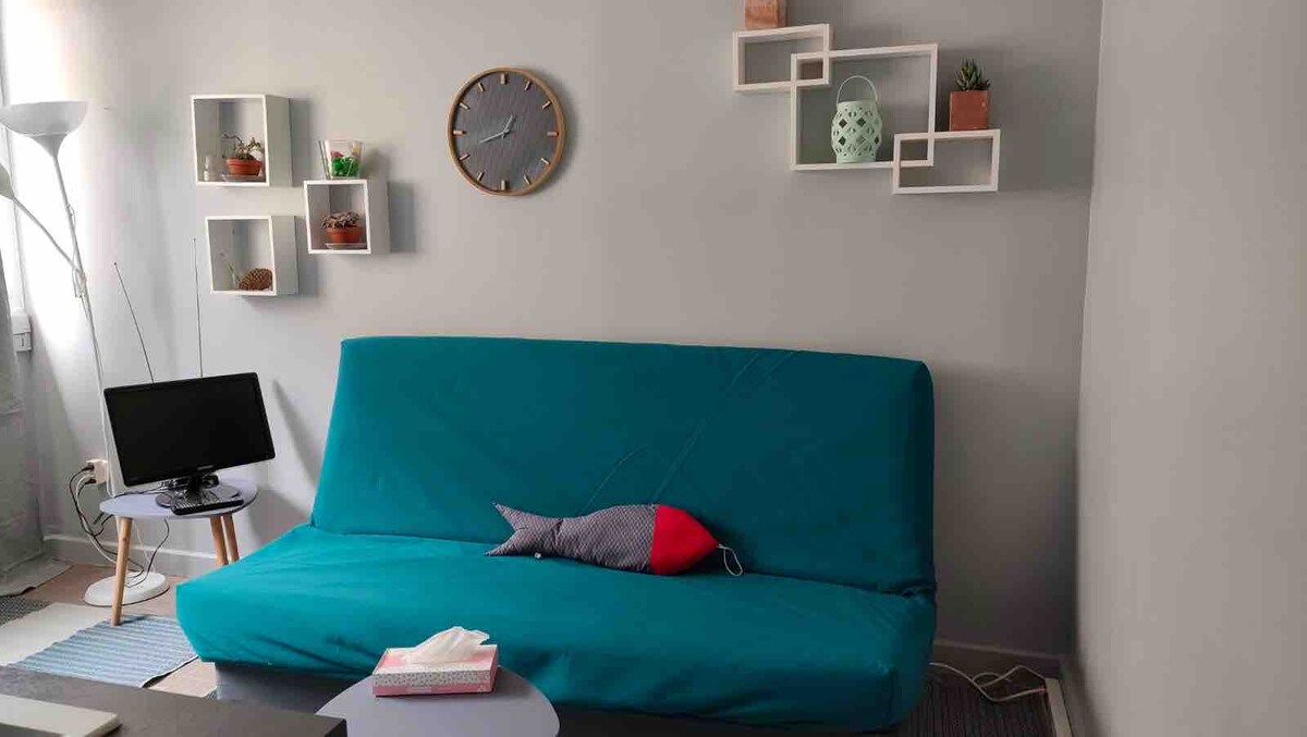 100 m from the sea, charming small studio 18 m2, air-conditioned, 2nd floor of a city building. TV connected to Netflix.