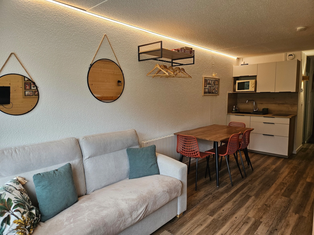 fully renovated 4/5 person studio of 23 m2 balcony facing south overlooking the slopes with its garden furniture.