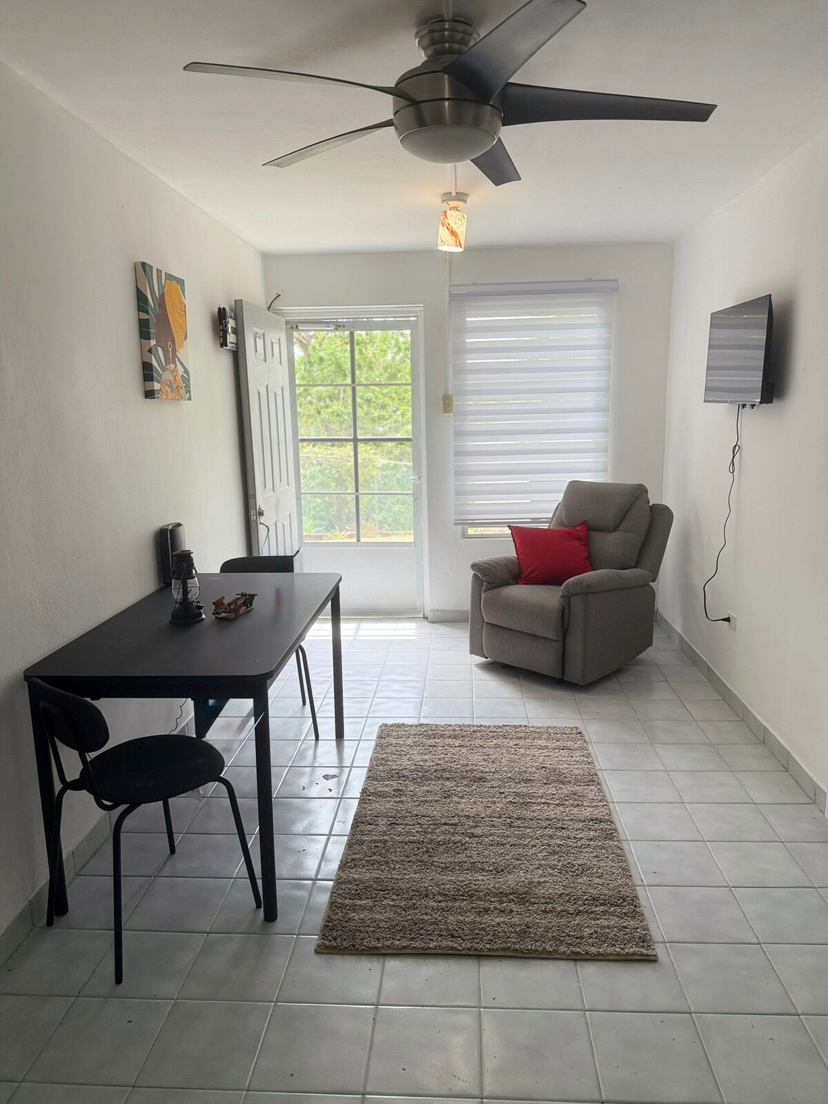 Spacious unit for 4, walking distant from La Rampa Parguera (Las Crayolas) & small supermarket. Equipped with air conditioner, wifi, 2 full beds with fresh sheets and pillows. A equipped kitchen with fridge, stove and microwave. Dining * Living area. 1 full bathrooms supply with towels and all the essential toiletry soap/shampoo/conditioner, hot water, hair blower and iron/iron board. A 40” Smart TV with streaming channels. A patio for relaxing and memorable time, after a long time in the water.
