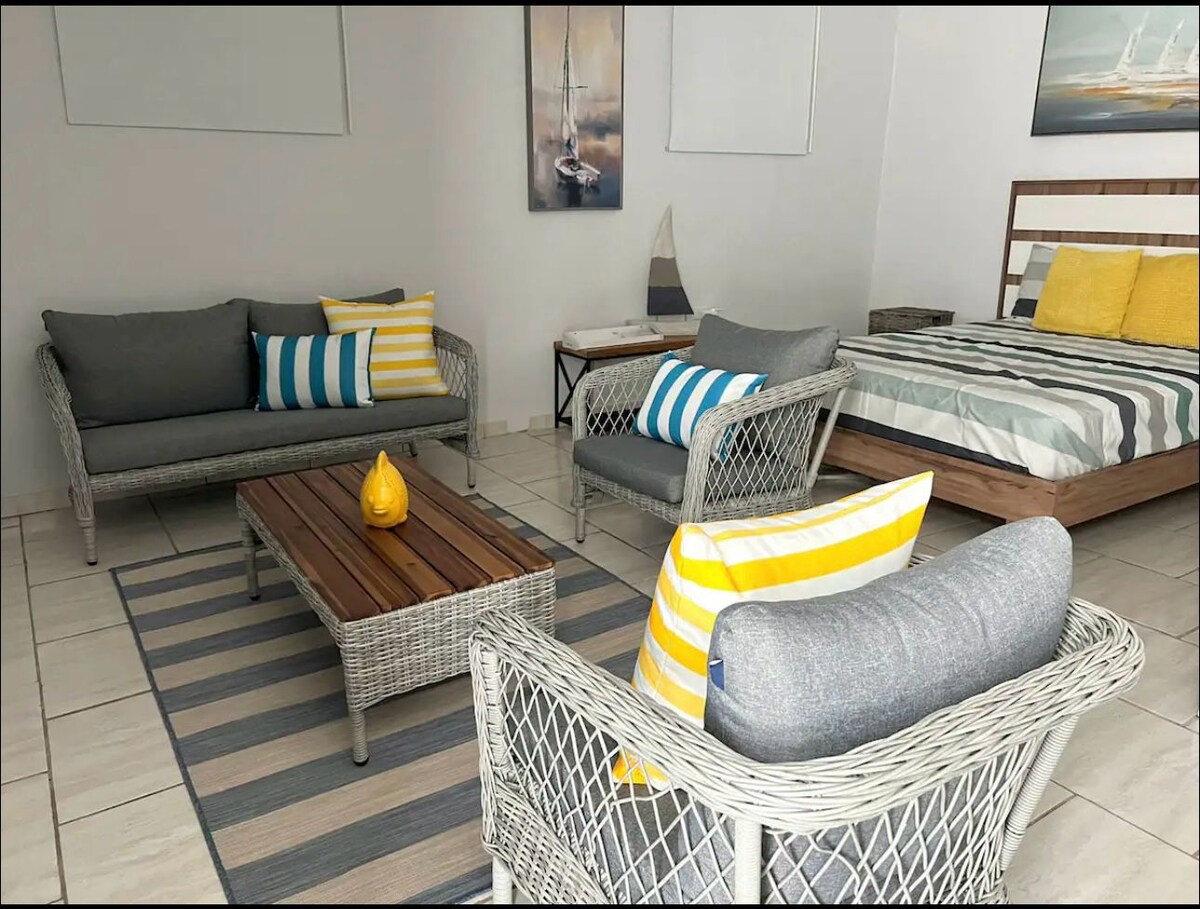 Spacious unit for 4, walking distant from public boat ramp Las Crayolas & small supermarket. Equipped with air conditioner, wifi, 2 full beds with fresh sheets and pillows. A equipped kitchen with fridge, stove and microwave. Dining/Living area w/ 1 full bathroom supplied with towels and all the essential toiletry soap/shampoo/conditioner, hot water, hair blower and iron/iron board. A 43” Smart TV with streaming channels. A patio for relaxing and memorable time, after a long time in the water.