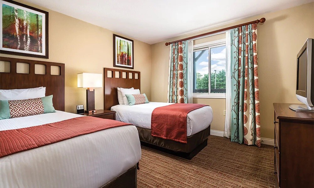 Great retreat with kids. Resort has 500,000 square feet of indoor and outdoor water parks throughout the Wilderness Territory. Wyndham Glacier Canyon, an island within the Territory, ripples with fun at go-cart courses, video arcades, zip lines and laser tag. This 2 bedroom unit comes with up to 6 waterpark passes. Resort determines which waterparks are open and what hours they are available. This reservation is for a minimum of 4 days.