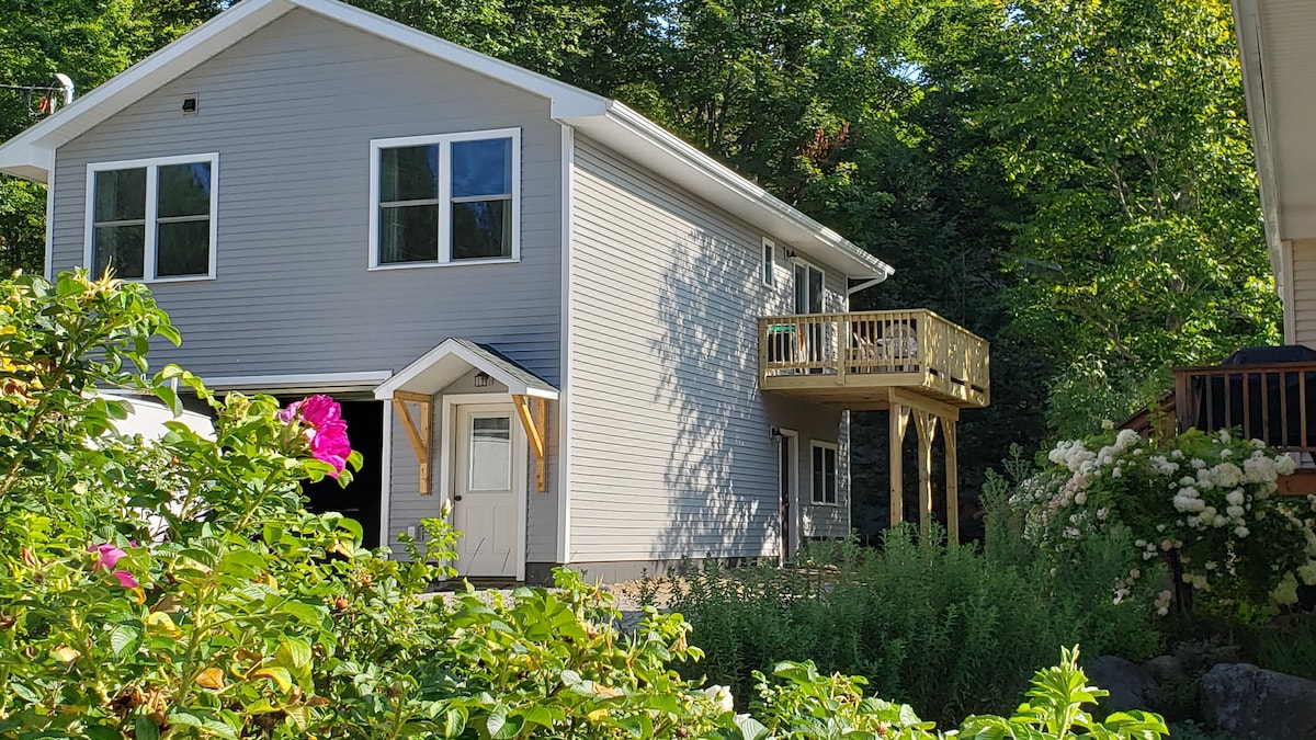 This beautiful two bedroom second floor apartment is conveniently located within the Village of Lake Placid. Just a five minute walk to Main Street (approx 1/2 mile) and a ten minute drive to Whiteface Mountain. Access miles of cross-country ski trails directly from the property or start you day with a round of golf-the first hole of the Lake Placid Club Course is right out the back door. Fully furnished in simple Adirondack style, this unit is ready for a weekend or week-long stay. Enjoy the convenience of off-street parking and ample secure storage for ski, hiking or biking gear and car. Wireless Internet access is available. A six person dining table and modern kitchen with butcherblock counter tops and new appliances are perfect for a quick meal or an evening of dining in. In the warmer months enjoy dinning on the expansive raised deck with outdoor refrigerator, patio table for six, gas grill and plenty of room to spread out. Enjoy the beauty of seasonal perennial flower beds and vistas of the high peaks. All linens; bedspreads, blankets, duvet covers, pillow shams are washed fresh for every guest.