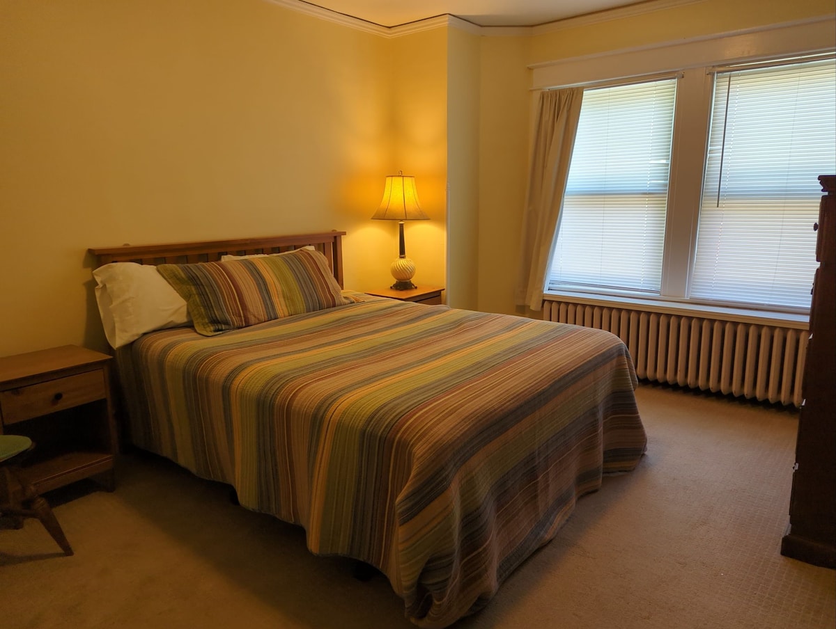 My space is a one bedroom ground level apartment with a private porch entrance with a few ascending stairs. You will have the luxury of your own small private yard and porch to use during the duration of your stay. Free street parking is available during the summer months and until 2am in the winter months. There is a parking lot across the street to allow for overflow street parking that we were granted permission to park in if street parking is not available or to utilize after 2am in the winter months. My home is fully stocked including linens, towels, shower toiletries, wifi, coffee maker and coffee!