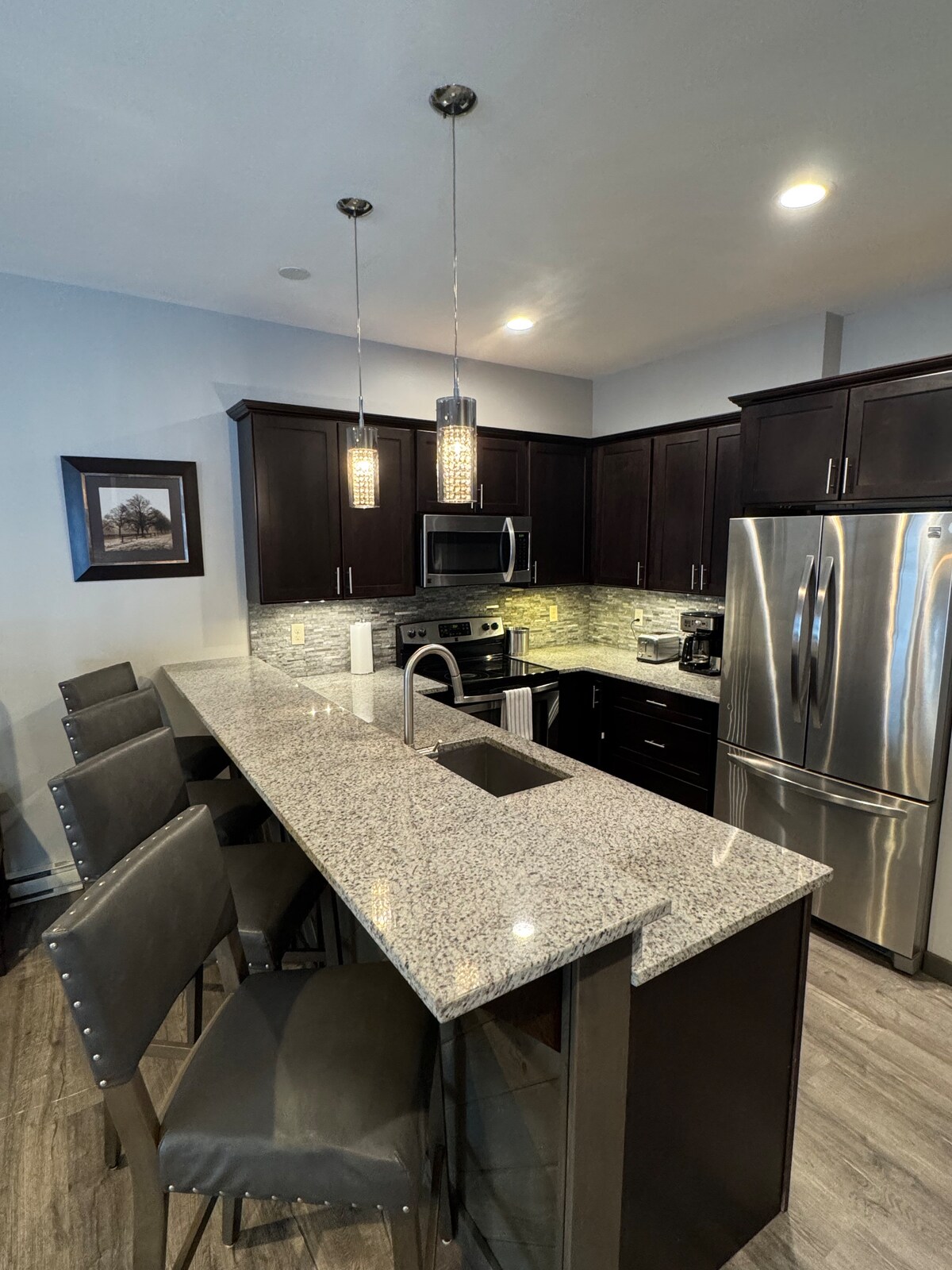 - "Great option to be close to everything but still have privacy and plenty of parking. Squeaky clean clean and well appointed. Obviously recently remodeled and redesigned. Manager Polina was super helpful and deserves a praise! Overall very satisfied!. Thank you " - "Renovated and excellent layout. Lots of great amenities-bbq and fire pit. Great location across from Grocery store. We would stay again! Only issues are check in is off site and parking difficult."