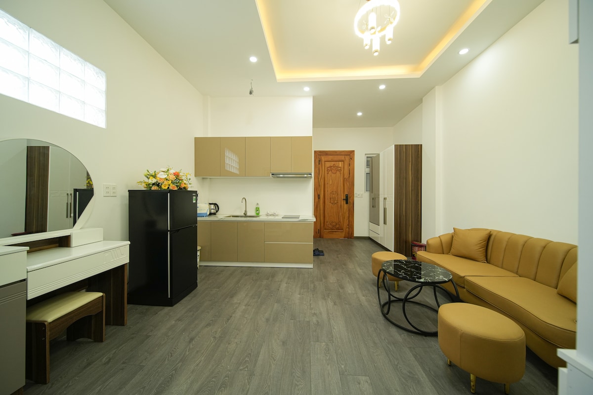 Central location (close to market, Vinmart supermarket, Pub) & with kitchen & basic cooking utensils, 1 Queen size bed & 1 sofa bed