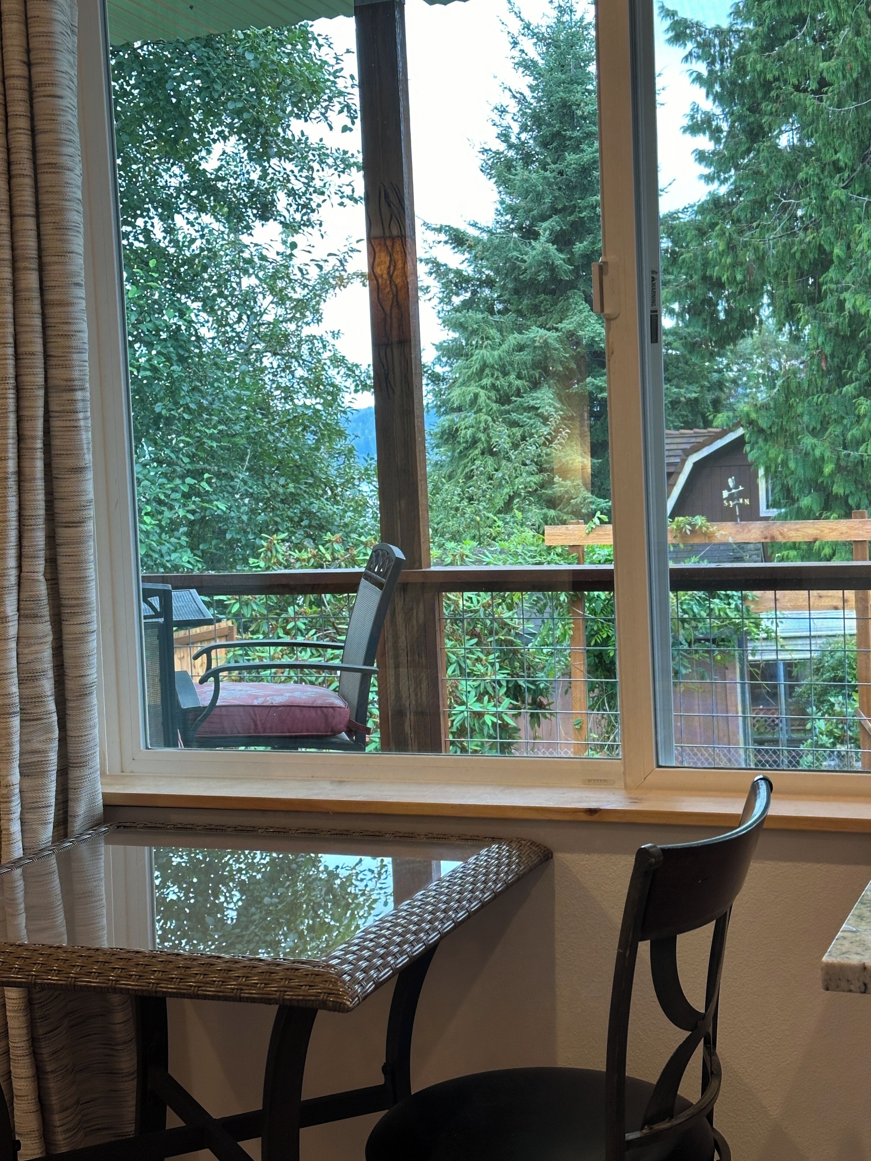 Whether you're seeking a romantic escape or a bit of solitude, you'll find a welcoming home in the air-conditioned living space. Begin each morning with a delicious breakfast in downtown Langley, then windowshop in the village before returning home to read your book on the wrap-around deck, soak in the jetted tub, or use the free wifi to stream a movie from your Netlfix account on the smart tv.