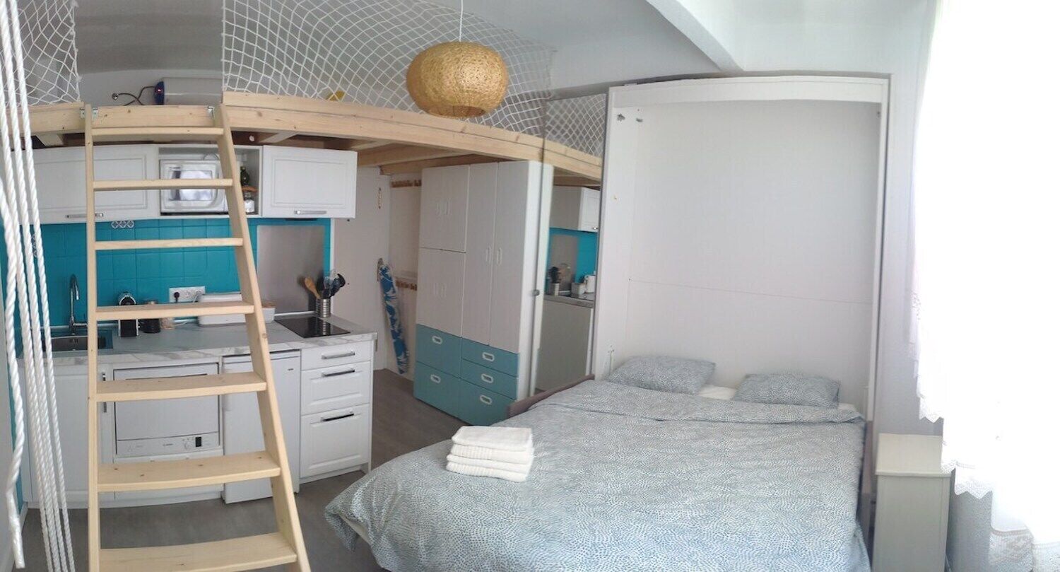 Our incredible, comfortable apartment with a balcony overlooking the sea. Tastefully decorated, equipped kitchen, nice bathroom, living room, 2 bedrooms, one with 1.50*2.00 beds and with an urban touch, it can accommodate 2 or 4 people.