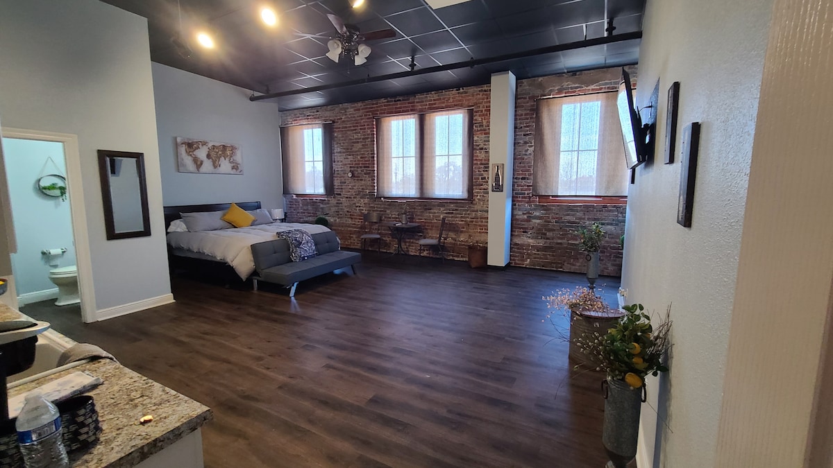 Step into the rhythm of Mississippi’s rich musical heritage with a stay at this soulful loft, nestled inside The Artistry - a boutique, culture-inspired building in the heart of downtown Laurel. Surrounded by jazz memorabilia and vintage vinyl records, this uniquely curated space pays homage to the legends of blues and Southern sound. Whether you're exploring the town’s historic streets or winding down with a record spinning softly in the background, every corner of this retreat invites you to slow down and tune in.