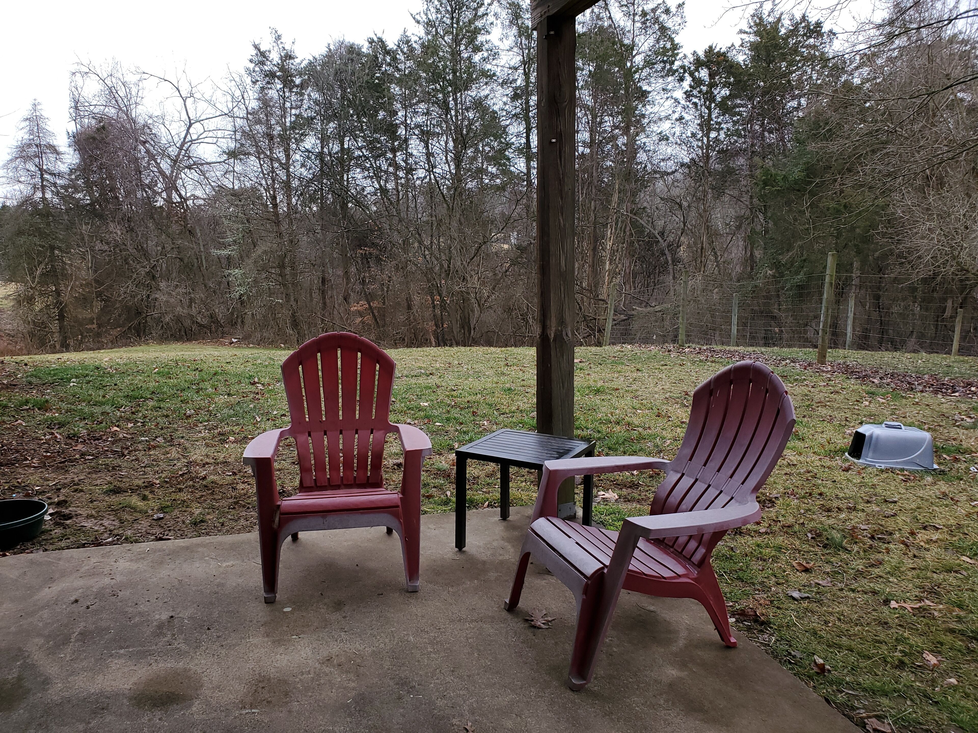 The loft really is just a comfortable place to sleep for the night. It's our room above the detached garage, that we recently completely reno'd with new carpet, paint, and small appliances. I want to mention there is not a bath/shower attached to the room. There is a port-o-potty at the bottom of the steps, and if you’re staying more than one night, you are welcome to use to house for a shower. The space also comes with WiFi, a stocked fridge, tv, cable, and double doors that open to this view.
