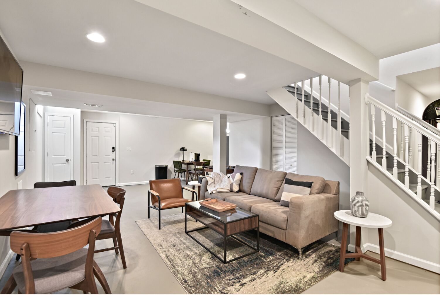 With a cozy and inviting 2-bedroom apartment, featuring two comfortable queen beds and a spacious living area with a couch or air mattress for additional sleeping space. The apartment is a private, full-basement unit with its own entrance, offering both privacy and comfort.
