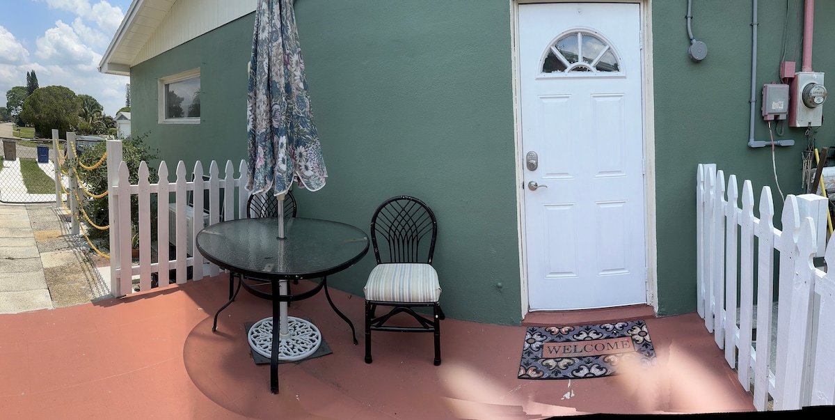 Welcome to Violet and Sunshine Suite: Your Private, Peaceful Getaway in Lehigh Acres. It features a luxuriously decorated 1 bedroom, living, and dining area. There's no kitchen but there's a nice baker's rack stocked with basic essentials, a full-size refrigerator, microwave, and a Ninja coffee maker. While it's attached to the main house, everything is fully private, from parking to sidewalk to the private entrance and backyard. I can't wait to share it with you. Book your stay today!