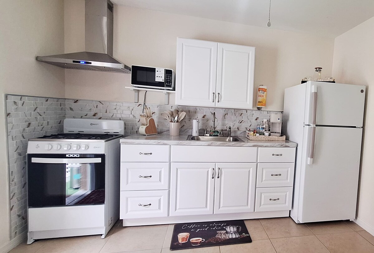 We have a full kitchen, so our guests can prepare their own meals, it also has american coffee, cream, white sugar, brown sugar, splenda, tea, oil, pepper. For Cuban coffee lovers you can enjoy it too.