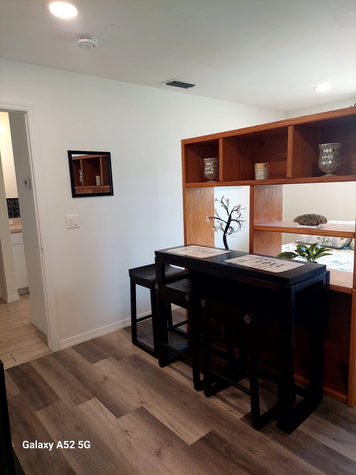 This property has central air, living -, kitchen, laundry, walk in closet, generous bedroom size with 1 queen bed, two contact lamps and USB ports. Smart TV and fans in the living room and also in the bedroom, and a work space desk. This space accommodates 2 people in the bedroom.