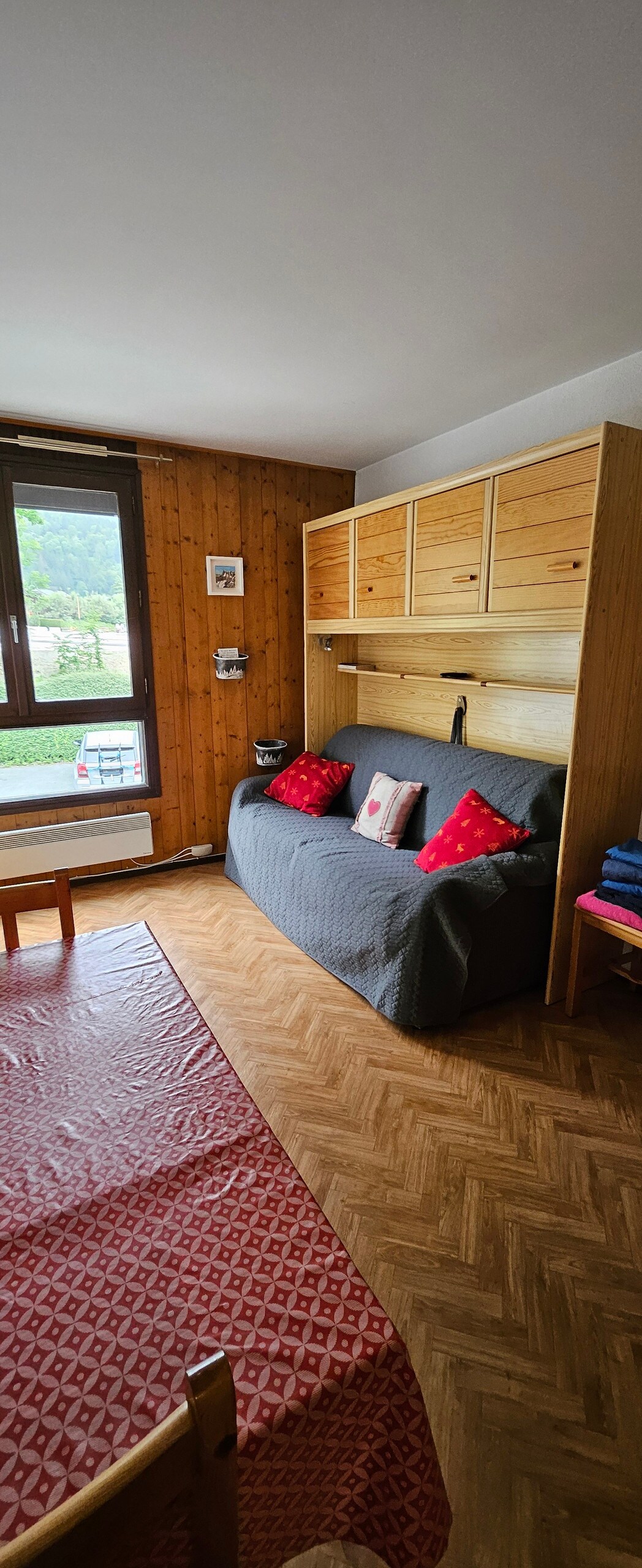 1 double bed in the alcove, 2 bunk beds, 1 double sofa bed, kitchenette, ski locker. Parking privé. Wifi e tv. Close to commerce and bus for chamonix and ski slope.