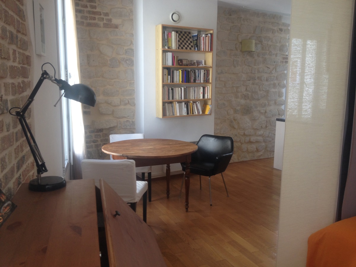 20 minutes from the center of Paris (Châtelet 5 min walk and 15 minutes by direct metro): small three rooms very Parisian, parquet flooring, fireplaces, in an old building, garden floor.