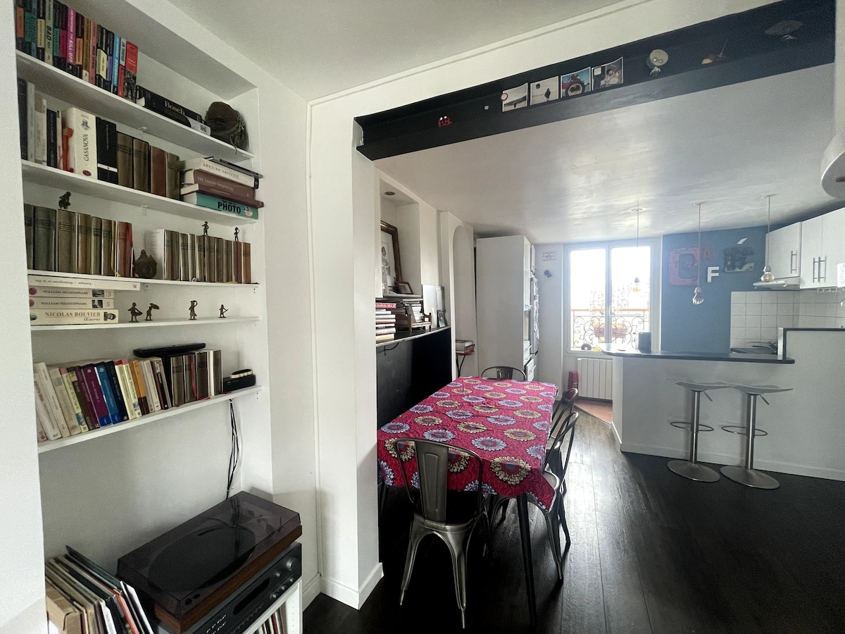 The simple, very peaceful accommodation - where I live with my daughter when I don't rent it - a few minutes from the center of Paris, in a safe and pleasant neighborhood. Restaurants, bars, shops and all nearby businesses.