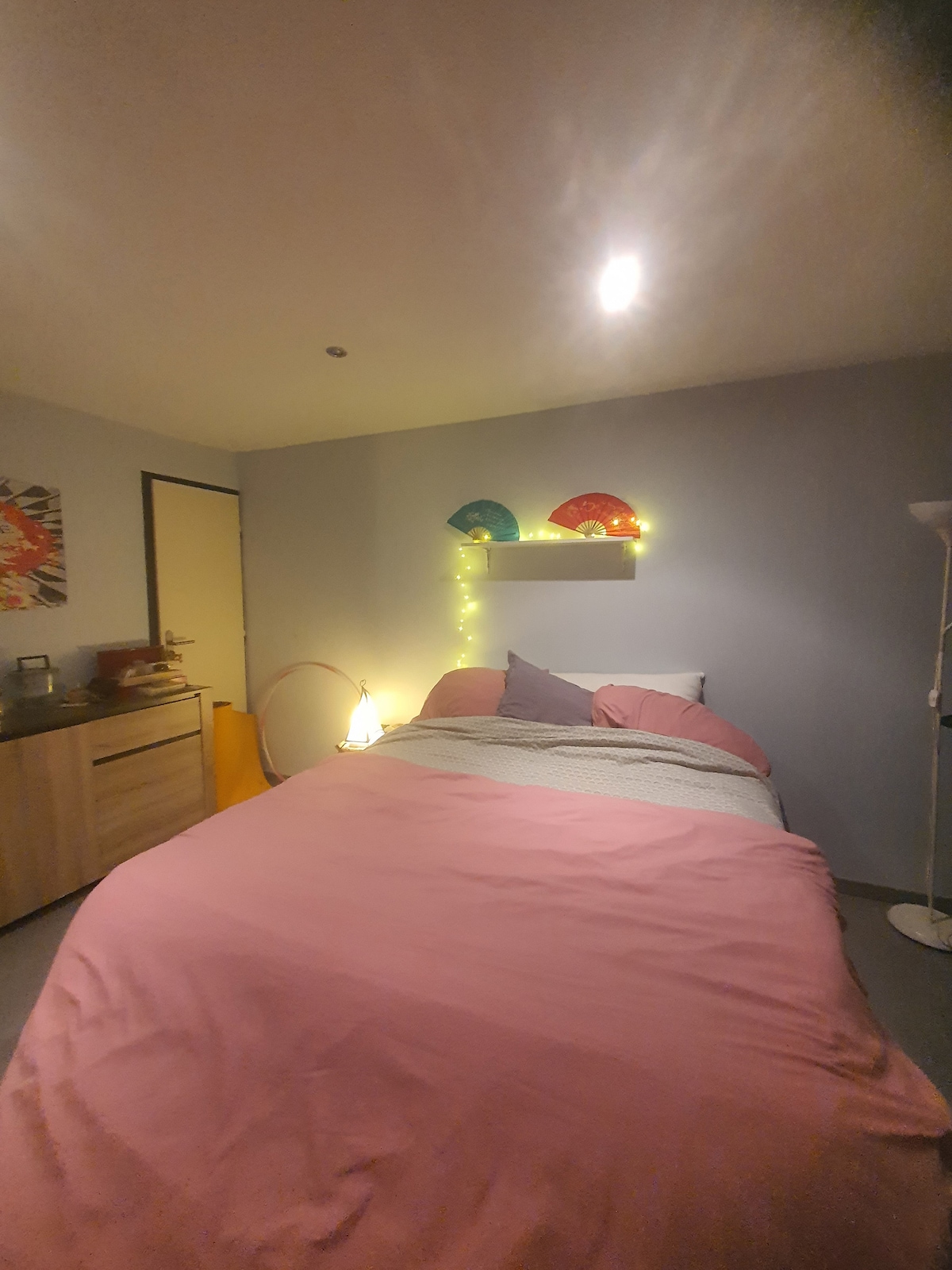 The bedroom with double bed closes with a sliding partition: I will adapt to your schedules so as not to disturb you when going to the kitchen.