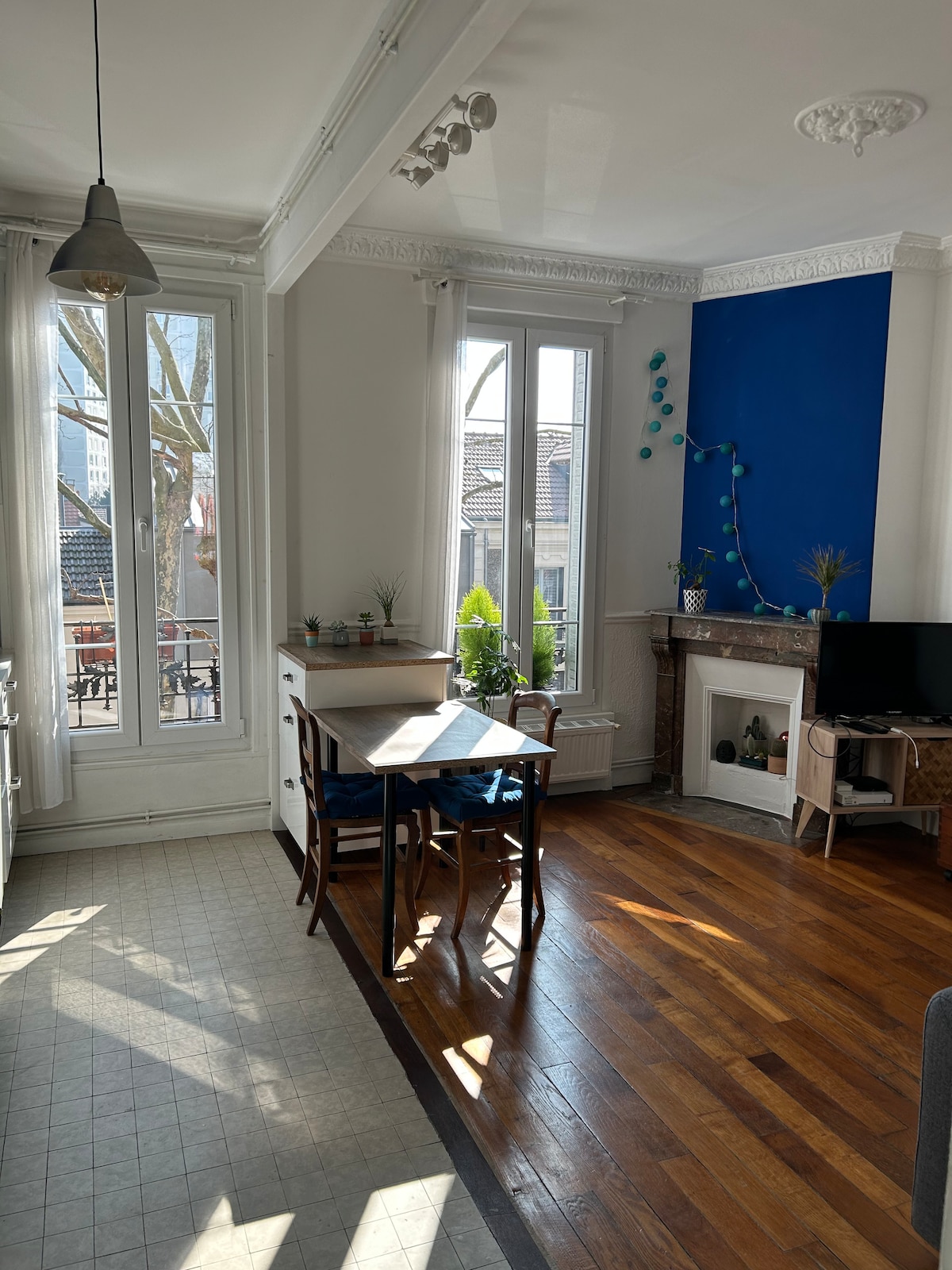 Charming cozy and bright studio refurbished. Ideally located less than 100 m from Paris in a quiet and wooded street with all local shops 2 steps (village atmosphere), it is 10 minutes walk from the metro, and 5 minutes from the tram.